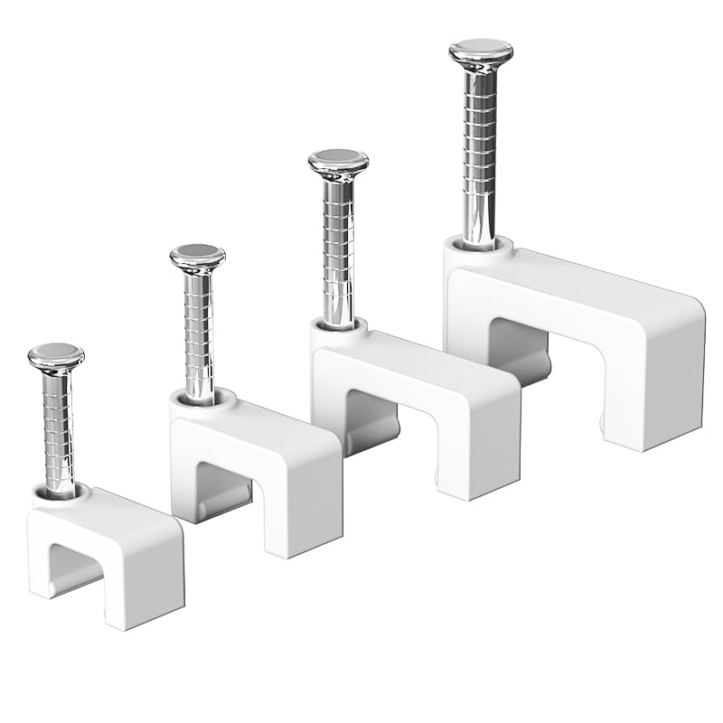 - 【Wide Design for Better Stability】Each clip features an upgraded wider nail base that holds cables more securely and resists slipping — ideal for thicker or heavier flat cords like Ethernet, coaxial, speaker, or TV wires.