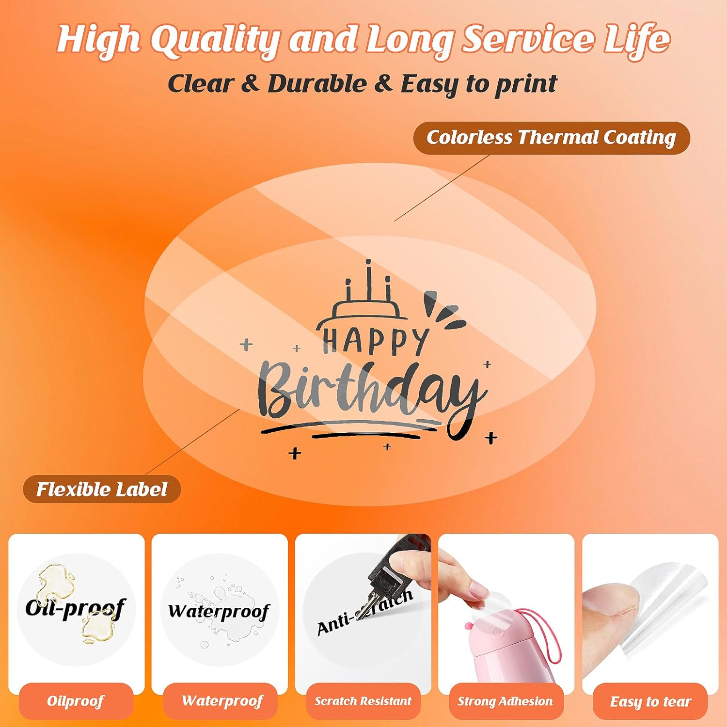 - {Nearly Invisible & Clear Printing}: The transparent sticker paper offers a near-invisible apperance, making printed content appear directly on objects—whether labeling glass jars, plastic containers, or metal surfaces. This clear design adapts to any background, ensuring professionalism for household organization, product packaging, or brand promotion. Use them as logo stickers customized with QR codes or thank-you messages for a polished look.