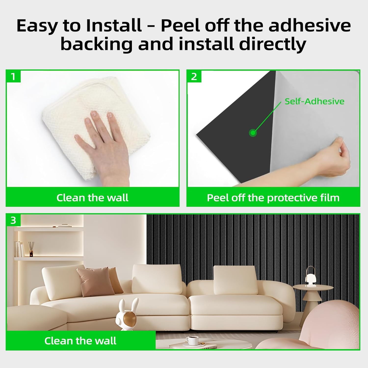 - 🔧 Peel-and-Stick Simplicity:No tools or damage! Strong self-adhesive backing installs in minutes. Renters rejoice – remove/reposition panels cleanly. Includes 5 commercial-grade panels (118 sq. ft total coverage)