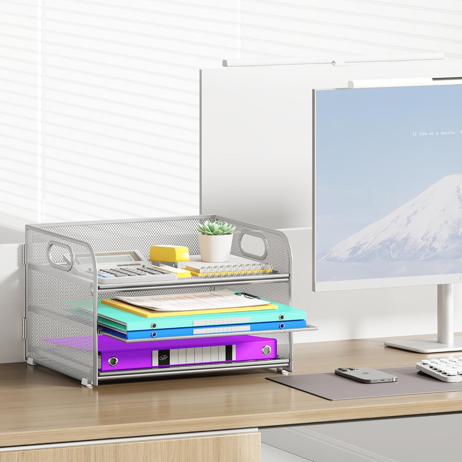 - 【DURABLE CONSTRUCTION】This desk file organizer is crafted from premium metal mesh. Thickened support rods and a sturdy frame ensure that the file organizer won't warp or break when holding a large volume of paper or letters.