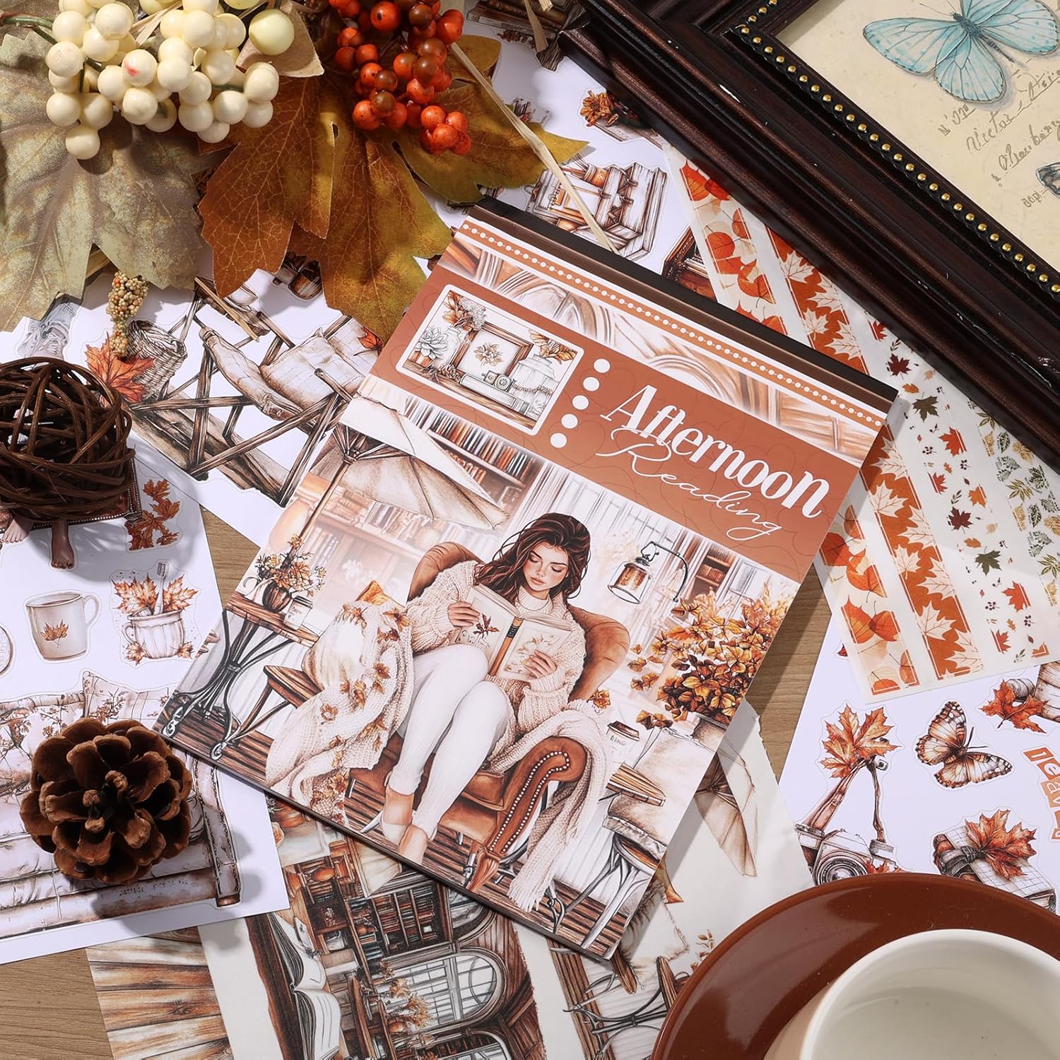 A5 Size Journaling Stickers -200 Pre-Cut Washi Stickers for Junk Journal & Scrapbooking Transparent Reading Girls Journal Sticker