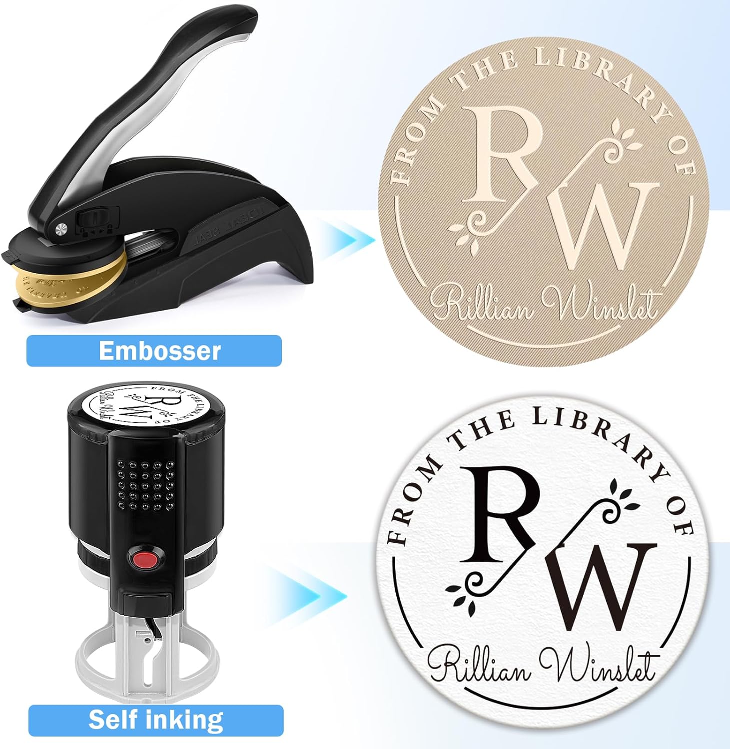 Wedding Embosser | Personalized Book Stamp | Monogram Embosser Stamp Customizable Rubber Stamp (Wedding 8)