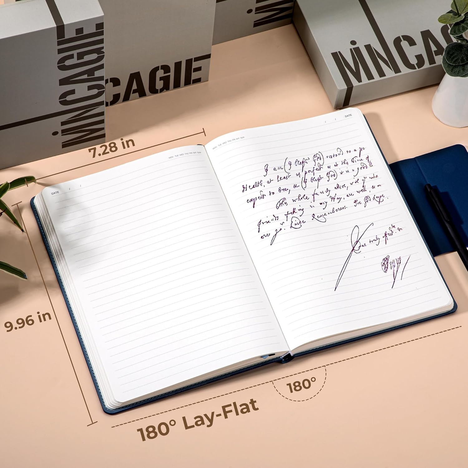 - Sleek Functionality: A magnetic square closure replaces traditional straps, ensuring secure closure and doubling as a hidden pen loop. Perfect for on-the-go use with its A5 journal for men and 180Β° flat-lay design.