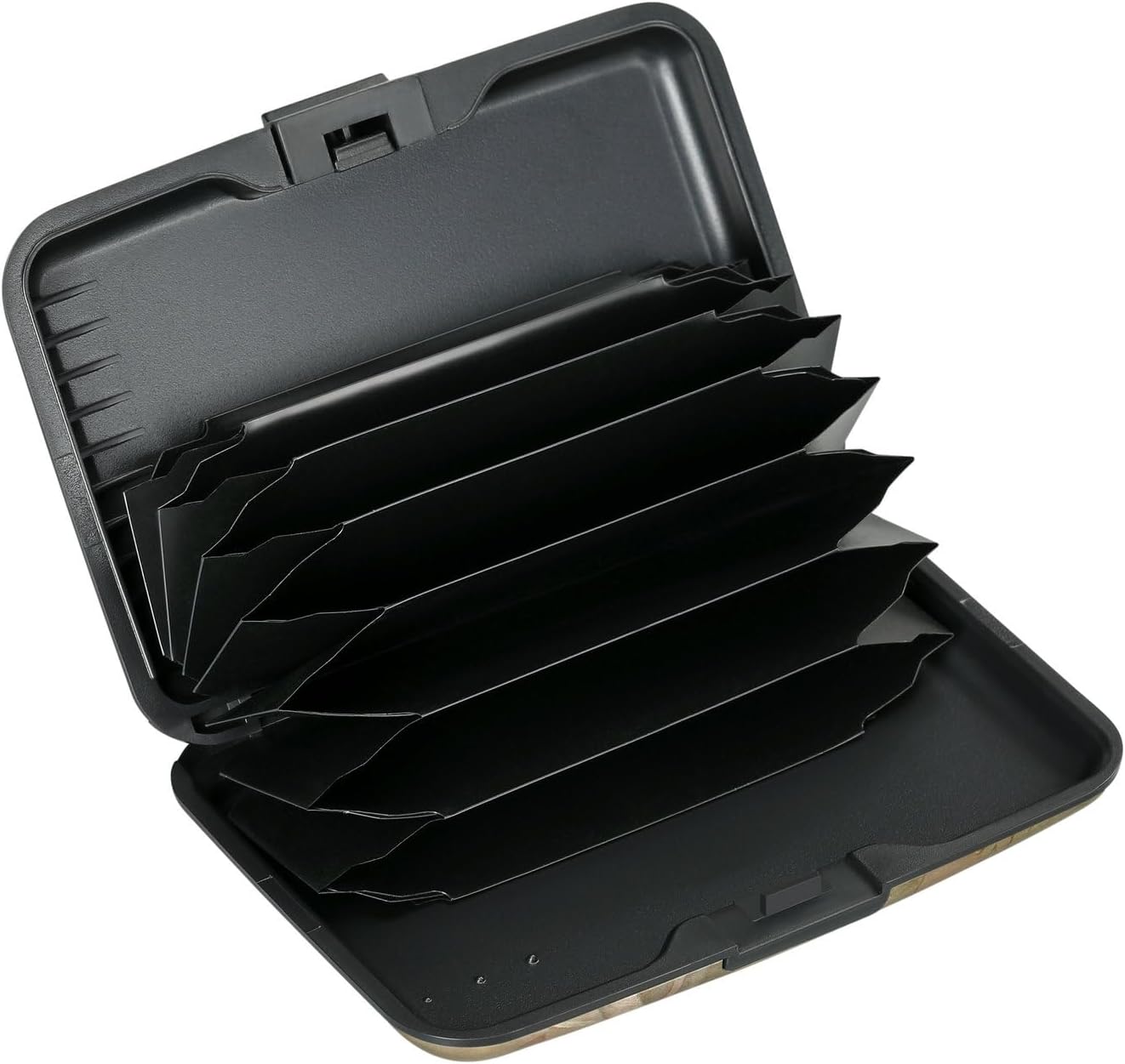 - Latches safely and securely when not in use. Rounded corner wouldn't damage on your clothes. With 7 accordion Slots, Capacity for up to more than 9 credit cards or more than 21 business cards.