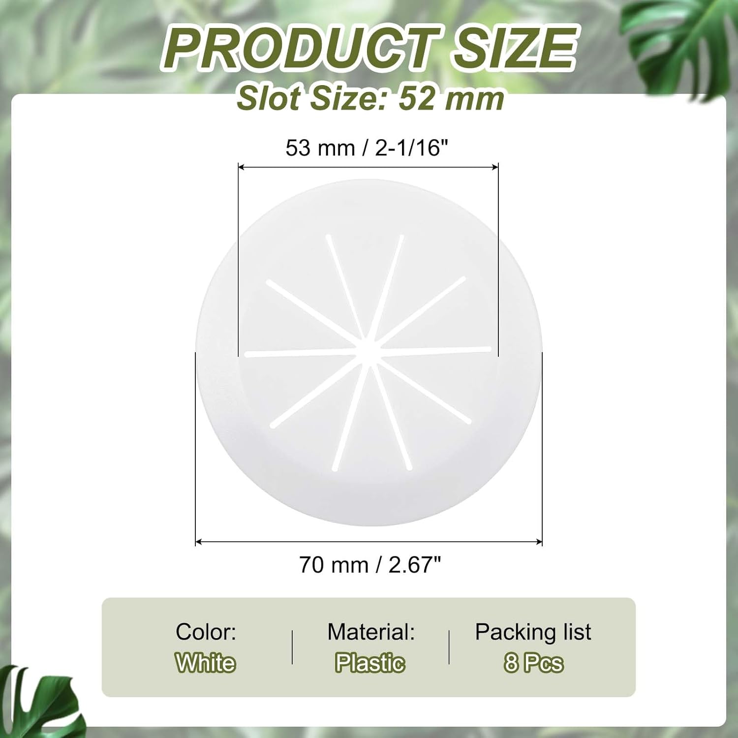 - Color: White; Material: Plastic; Inner Diameter: 53 mm / 2-1/16"; Slot Size: 52 mm / 2.05 inch; Total Size: 70 mm / 2.76 inch; Packing List: 8 Pcs x Desk Grommet