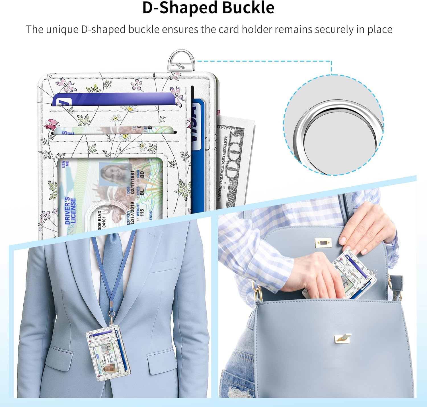 - Portable & Convenient: Minimalist design for easy carry. This wallet for women men Includes a D-shackle for attaching to a lanyard or keyring
