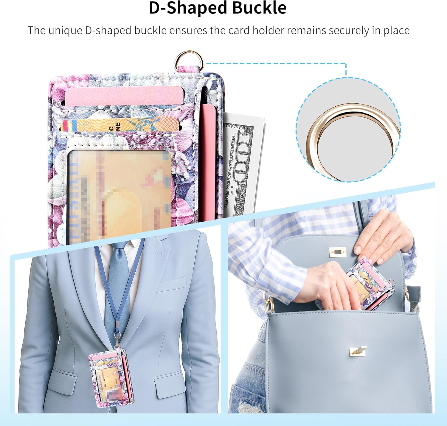 - Portable & Convenient: Minimalist design for easy carry. This wallet for women men Includes a D-shackle for attaching to a lanyard or keyring