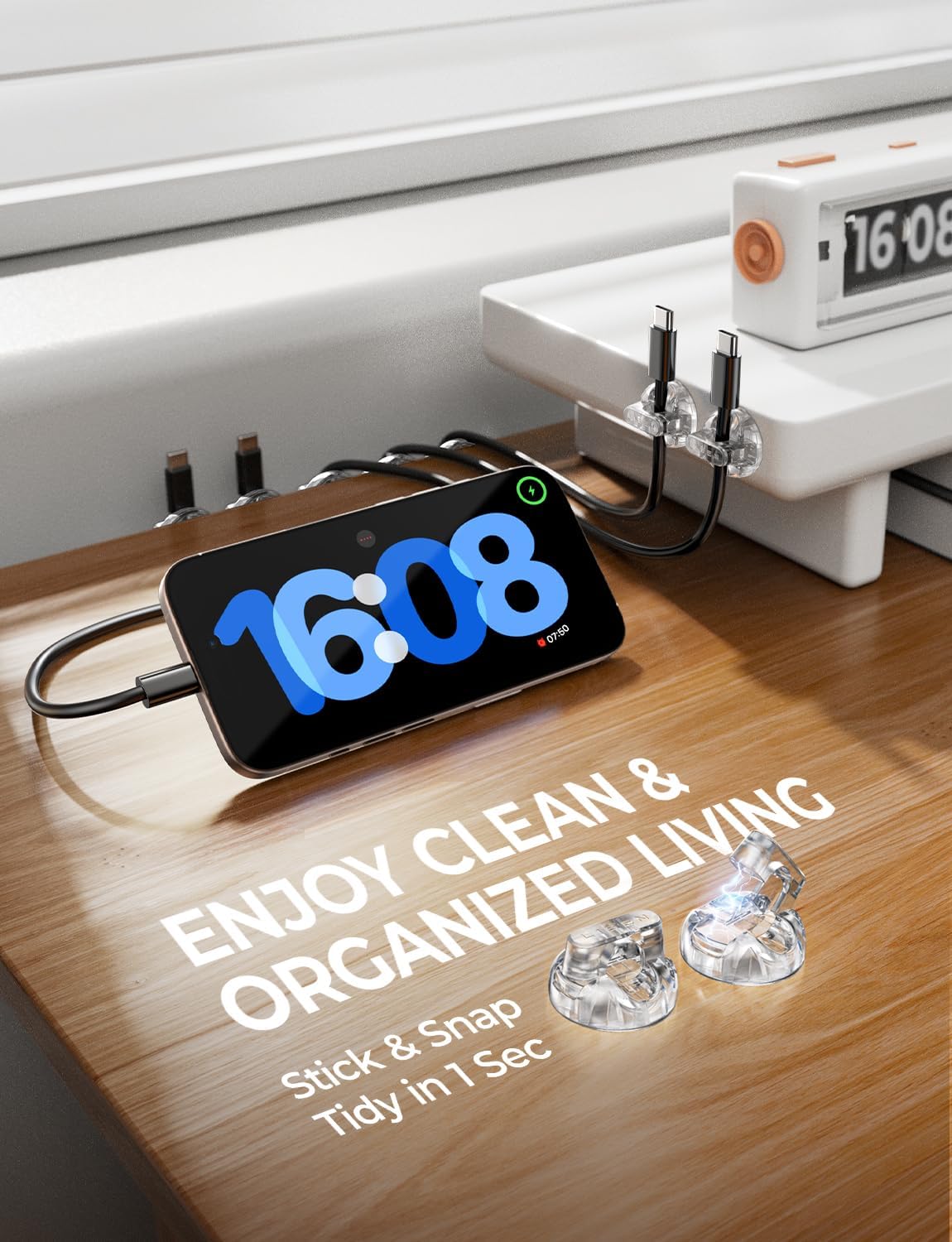 - Compact, Tidy Up Any Space: Measuring just 0.85" x 0.85" x 0.55" and weighing only 3g, LISEN cold holder is perfect for narrow spaces. With 8 individual clips included, you can neatly arrange cables on desks, nightstands, walls, or even in your car. This versatile organizer is a must-have accessory for keeping your space clean and clutter-free