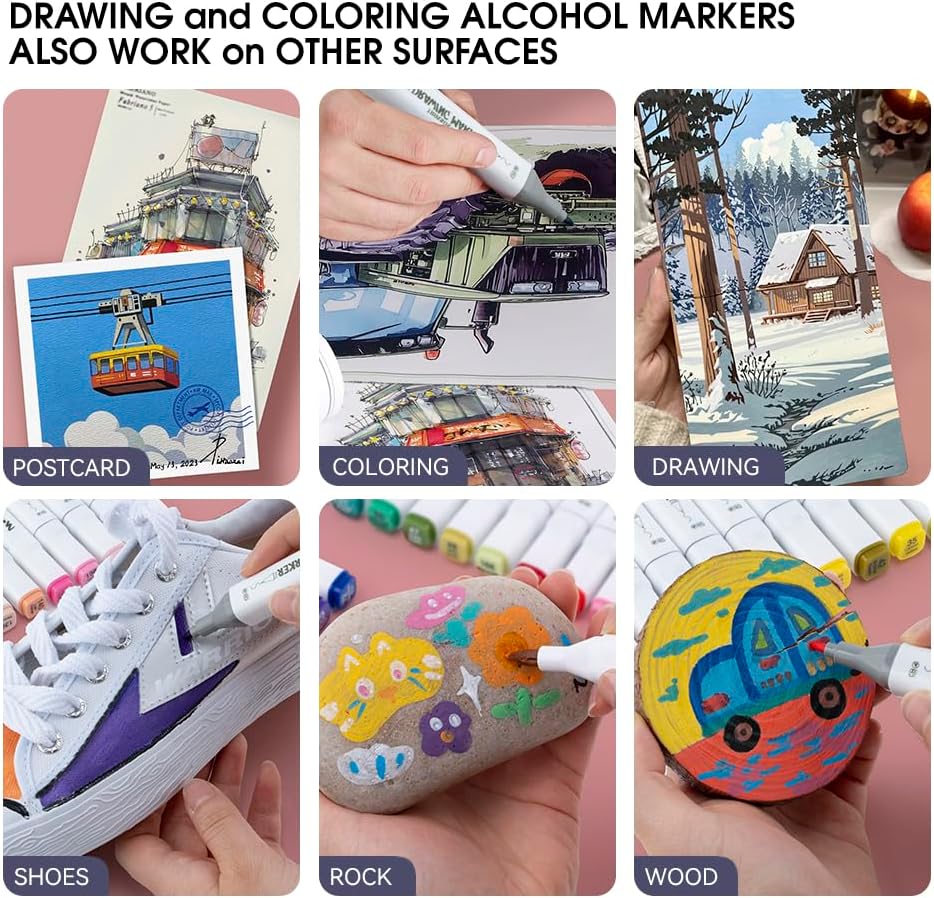- 48 rich and saturated colors of alcohol markers are carefully selected colors by fine artists. They offer a broad color gamut, ranging from basic hues to intricate shades, providing artists with ample choices, perfect for drawing and coloring for both artists and hobbyists.