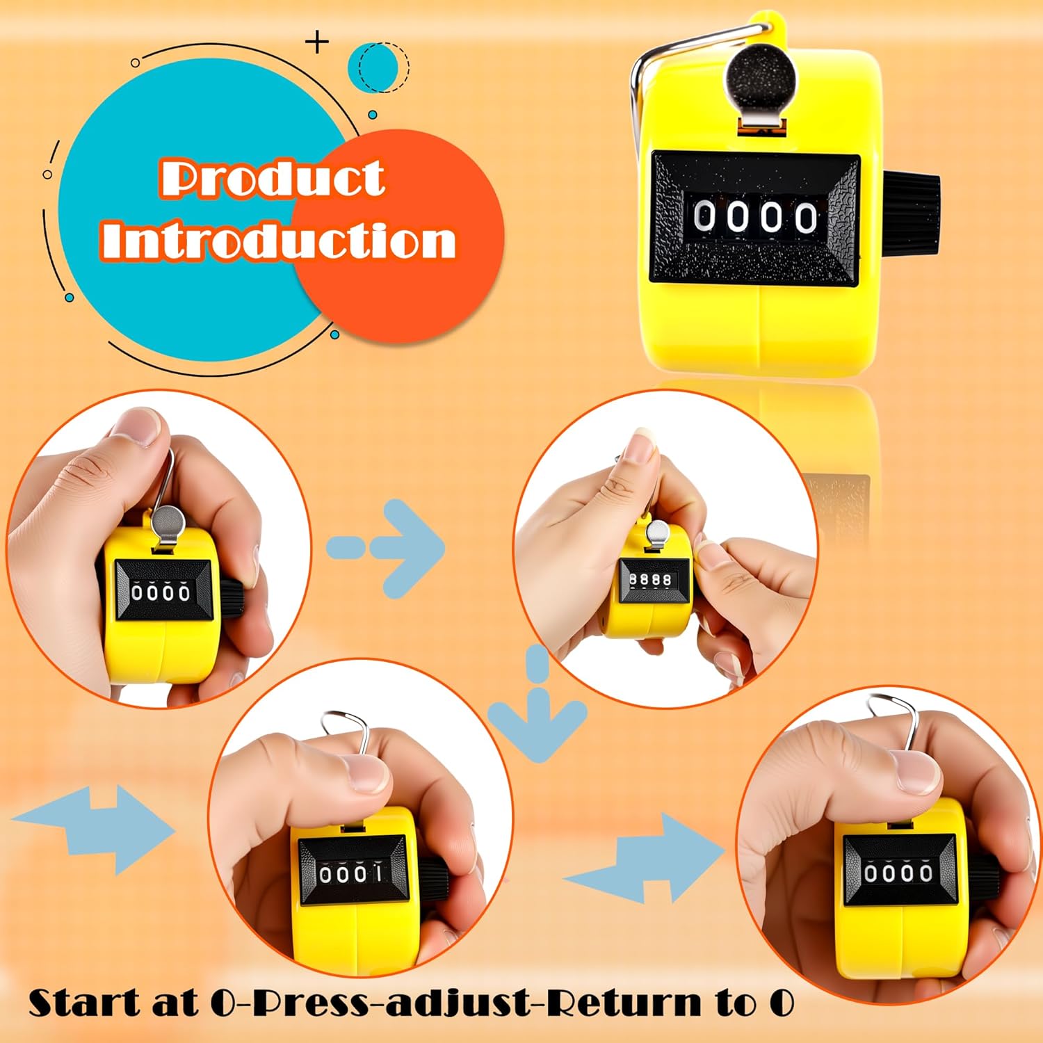- ✅Practical Design: This hand tally counter works without any power—no need to worry about energy. Simply press to count and turn the side knob clockwise to reset instantly. Accurate 4-digit display up to 9999 for hassle-free use