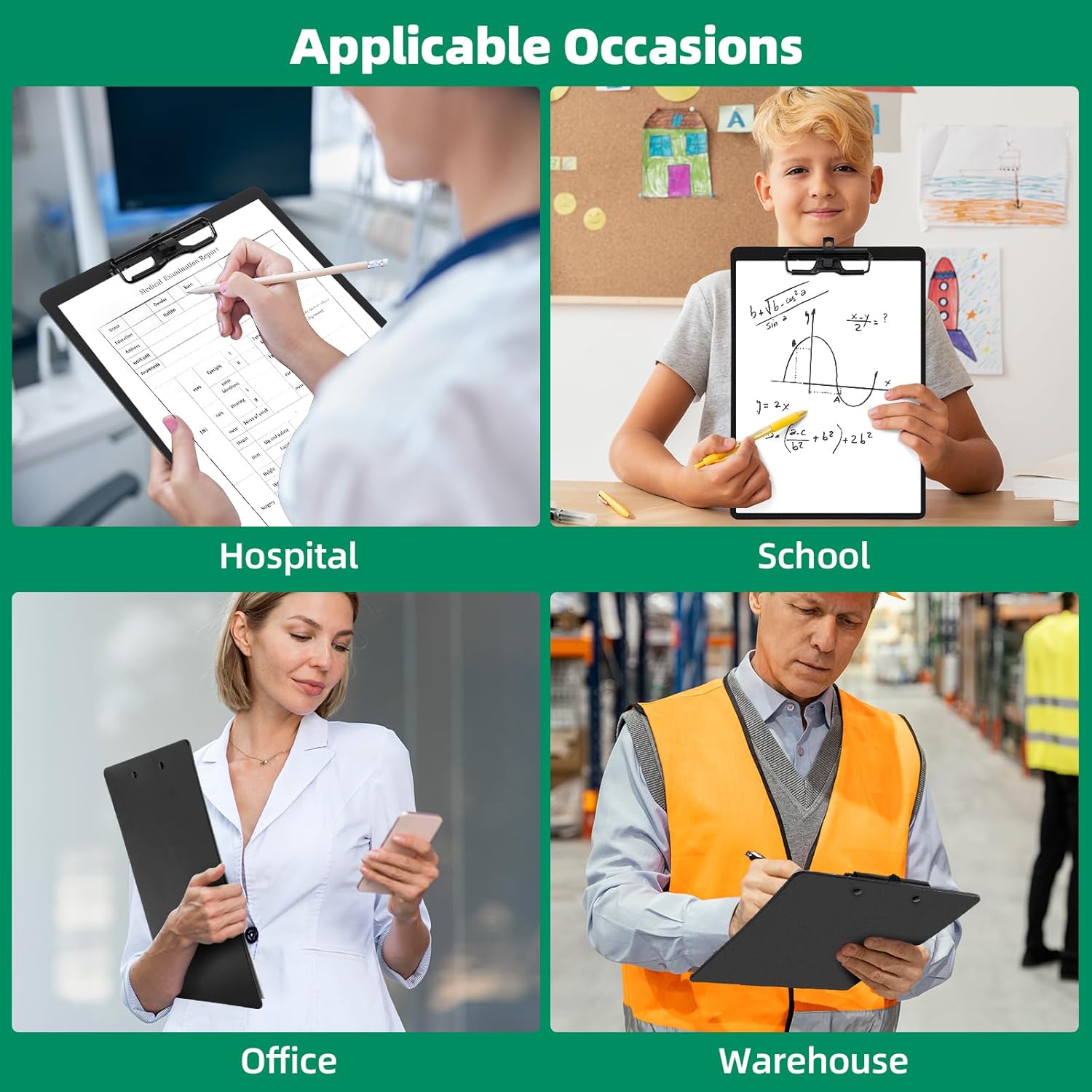 - Lightweight and Portable: This black clip board measures 12.5x9 inches. Compact and lightweight, it can be easily put into your backpack and carried with you, convenient for you to take out the documents to read and write at any time. Made of sturdy PP material, durable.