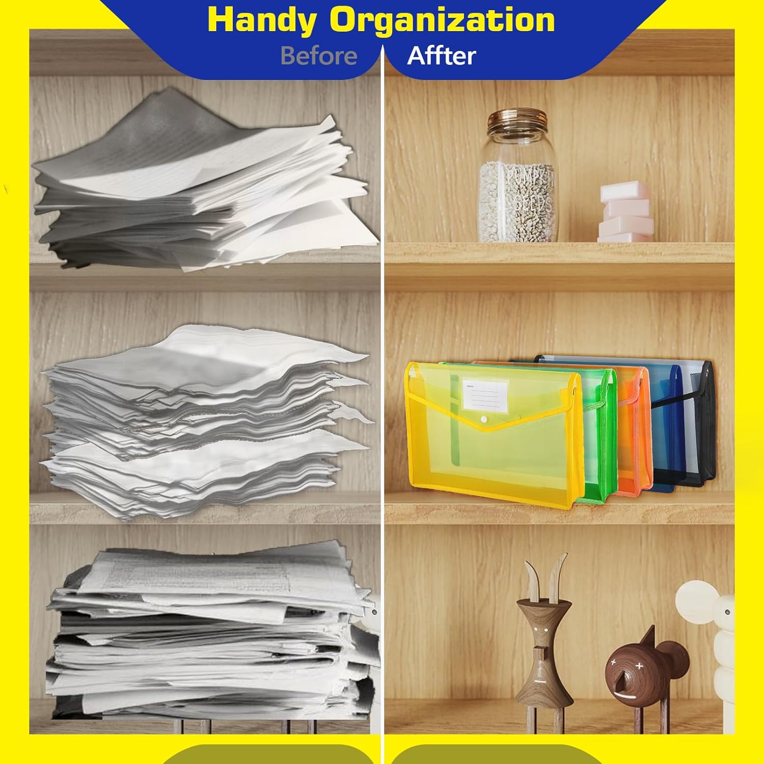 - Thoughtful Design: Our plastic expanding file folders with snap closures provide a secure barrier for your documents. Each plastic envelope also features a label pocket, making it easy to organize and quickly locate important papers.