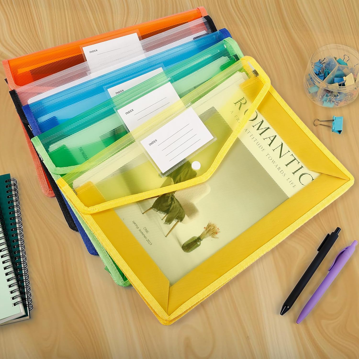 - Package Content: You will receive 5 pack expanding file folders in different colors: blue, yellow, green, black, and orange. Each A4 folder features a semi-transparent design, making it easy to organize and distinguish various documents.