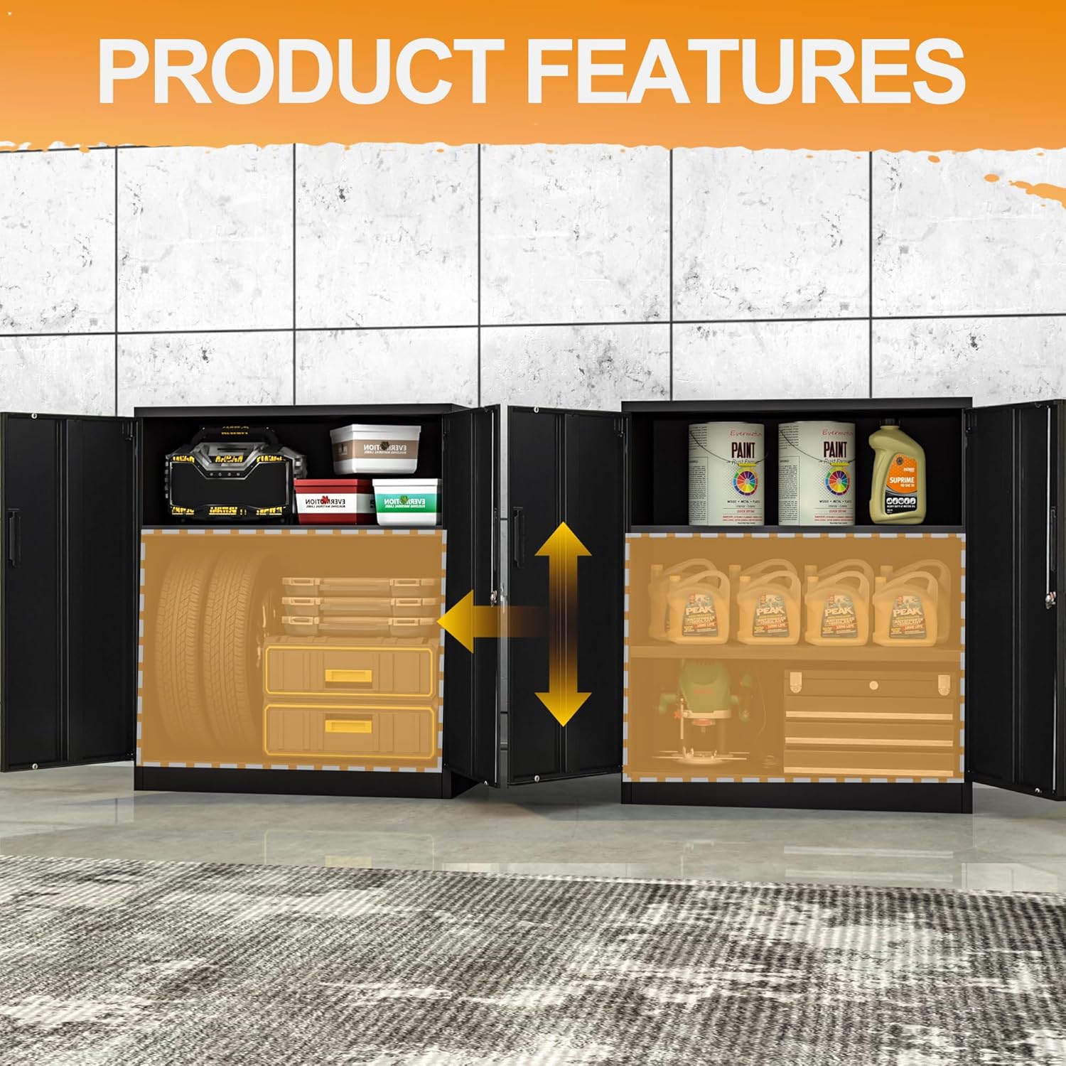 BESFUR Metal Garage Storage Cabinet 36"H, Steel Locking Cabinet with 2 Lockable Doors and 2 Adjustable Shelves easy to assemble for Home Office, Garage,School, Apartment, Warehouse, Utility Room,Black