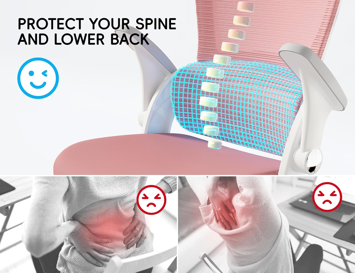 - Ergonomic Lumbar Support for All-Day Comfortļ¼Say goodbye to back pain! Our office chair features an independent lumbar support that perfectly contours to your spine, providing targeted relief and reducing fatigue during long work hours. Whether youāre gaming, working, or binge-watching, your lower back stays supportedāno more slouching or discomfort.