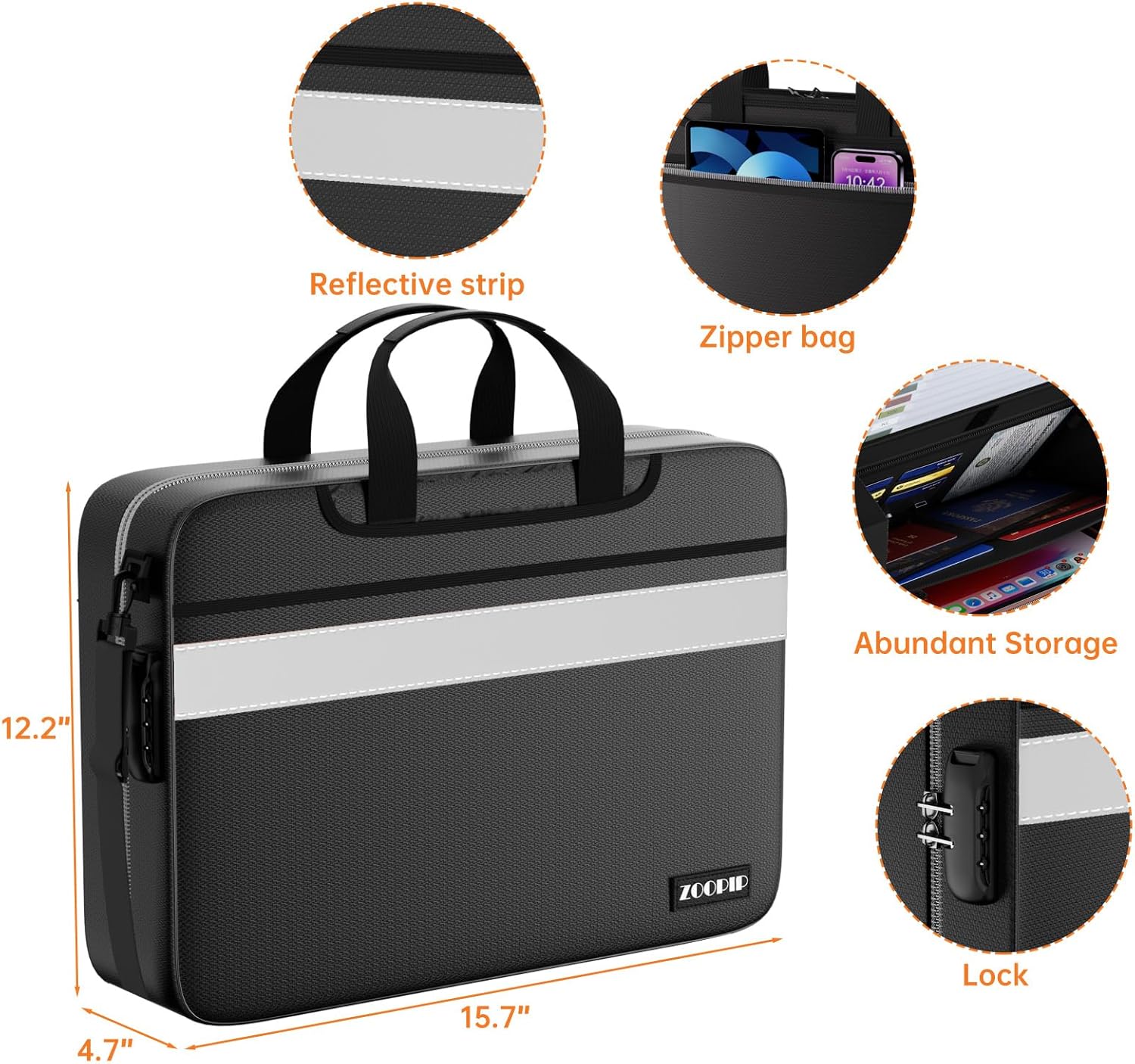 - 【Fireproof and Water Resistant】ZOOPIP fireproof Accordion File Organizer is made of not sticky Dust-proof Silicone coated fiberglass, which can withstand temperatures up to 5200°F.Fireproof file bag with zipper closure has been passed by SGS TEST:UL94 VTM-0 Certified.At the same time, the glass fiber has excellent waterproof performance.Even when it rains, it is not afraid of water.Splash resistant design, no fear of heavy rain.You go straight ahead, and our bag will escort your important documents!