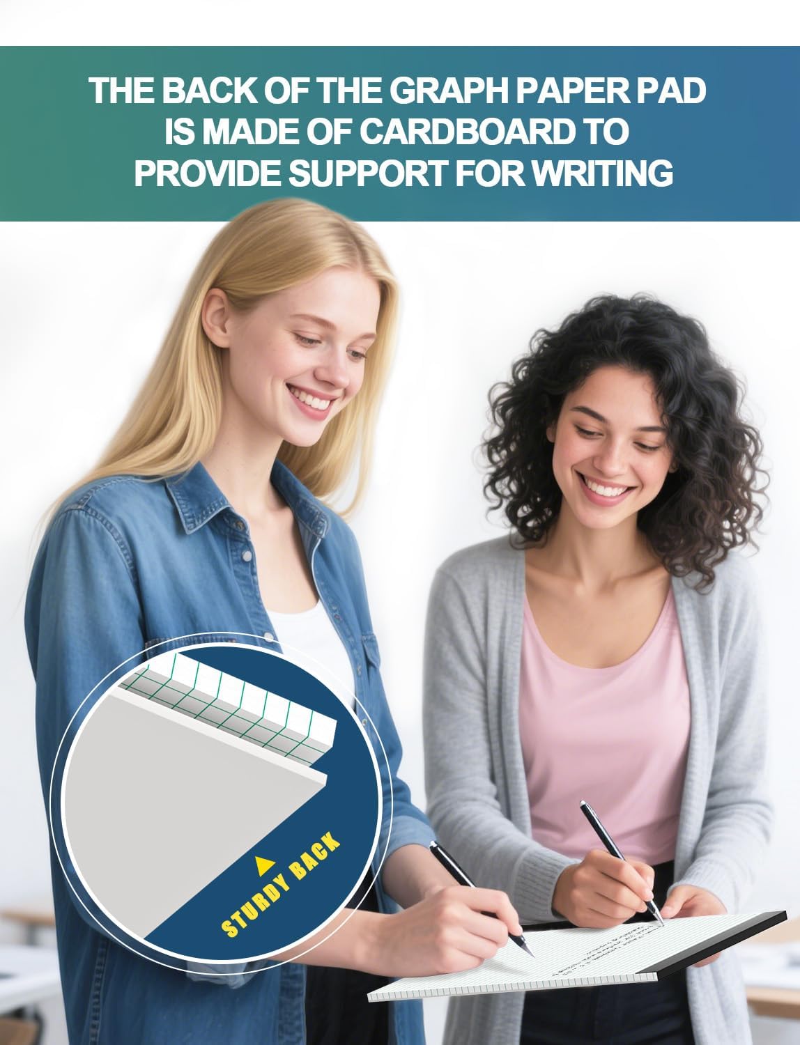 - 【STURDY CARDBOAD BACKER CONSTRUCTION】Graph paper pad 8.5 x 11 with white cardstock backing, these grid paper pads deliver durability and writing stability. The rigid backing board prevents tearing when used on clipboards, lab benches, or uneven surfaces–essential for architects on-site, teachers grading papers, or professionals in mobile work environments. Unlike other pads, our foundation ensures crisp lines whether you're using fountain pens, markers, or mechanical pencils