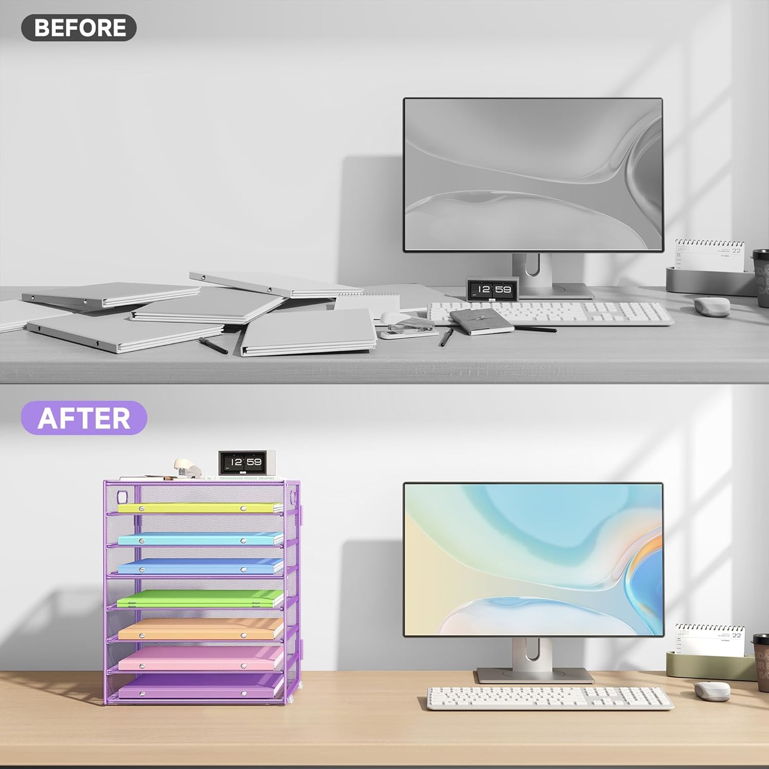 Paper Organizer with Handle Metal Mesh File Sorter for Desk Organizers Paper Letter Tray Desktop Document Sorter for Office or School 2 Pack 8 Tier Purple Desk Storage
