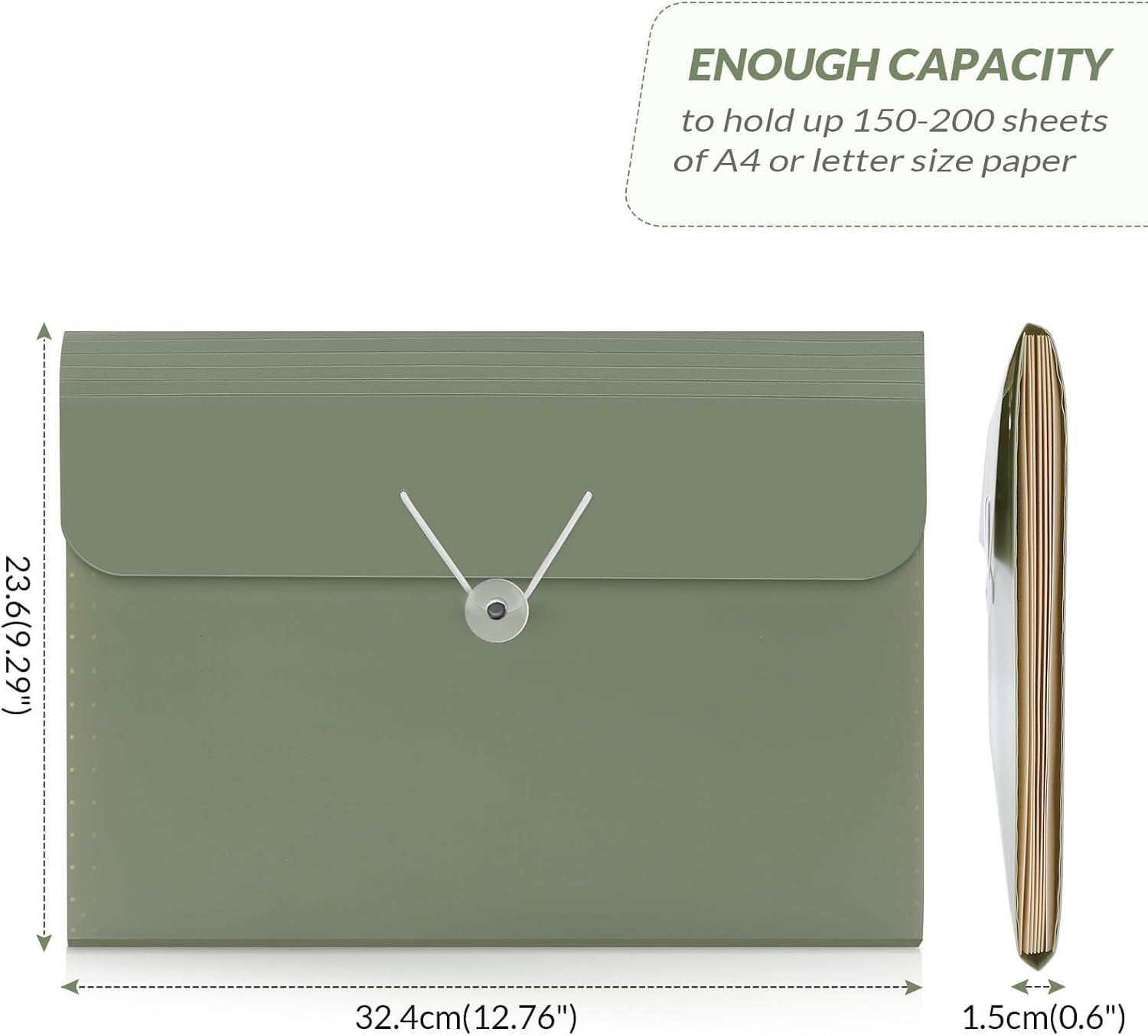 SKYDUE Accordion File Organizer, Expanding File Folder with 7 Pockets, Portable Receipt Paper Bill Document Organizer, Letter/A4 Size Filing Folder School Office Supplies, MossGreen