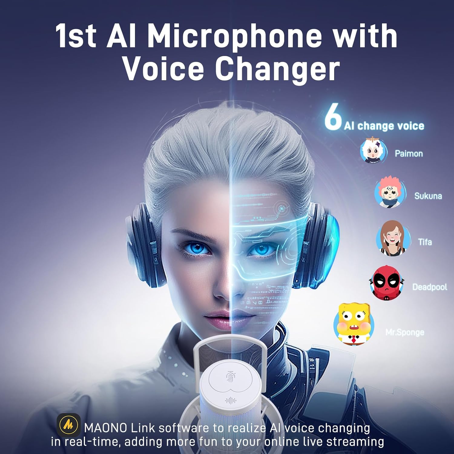 MAONO Wireless Microphone for PC,Gaming Streaming USB Mic with Software AI Voice Change,3-Level Noise Cancellation,Custom EQ,Gain Control for Computer Podcast Recording (DM40 AI Mic, DM40-White)