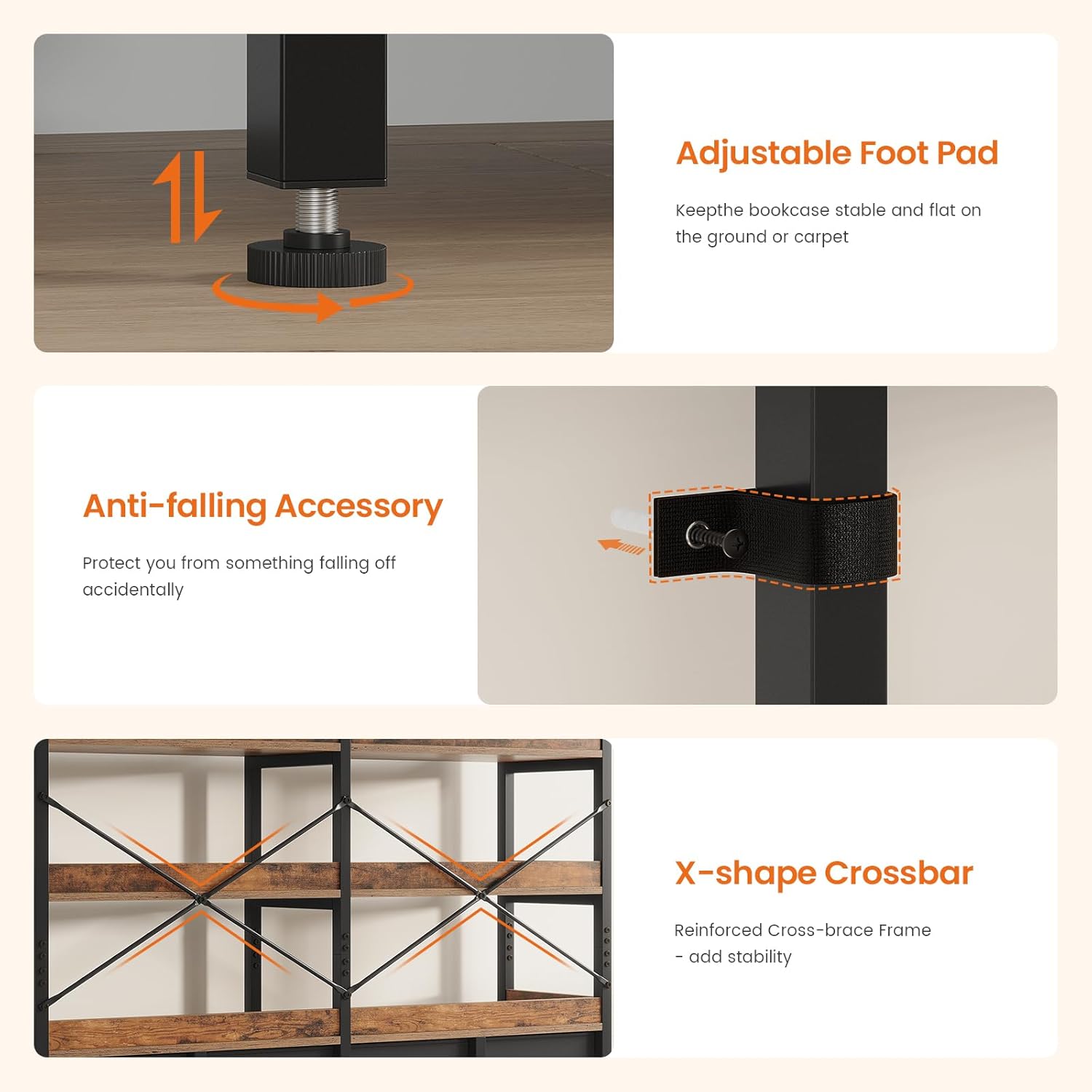 - Enhanced Stability:Equipped with adjustable foot, nd an anti-falling belt to enhance stability, prevent tipping, and ensure the safety of your family. Display shelf with 2 in baffles to prevent items from falling down