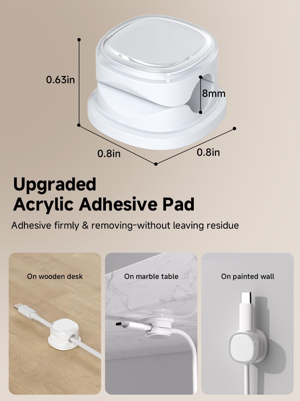 - No-Residue Acrylic Adhesive : Unlike ordinary adhesive tapes, our cable holder organizer utilizes the acrylic adhesive that is stronger and leaves no residue and won't damage your desk / nightstand or walls when removed. Just simply stick the wire holder organizer to any smooth and dry surface, such as wooden table, glass, or ceramic tiles, etc