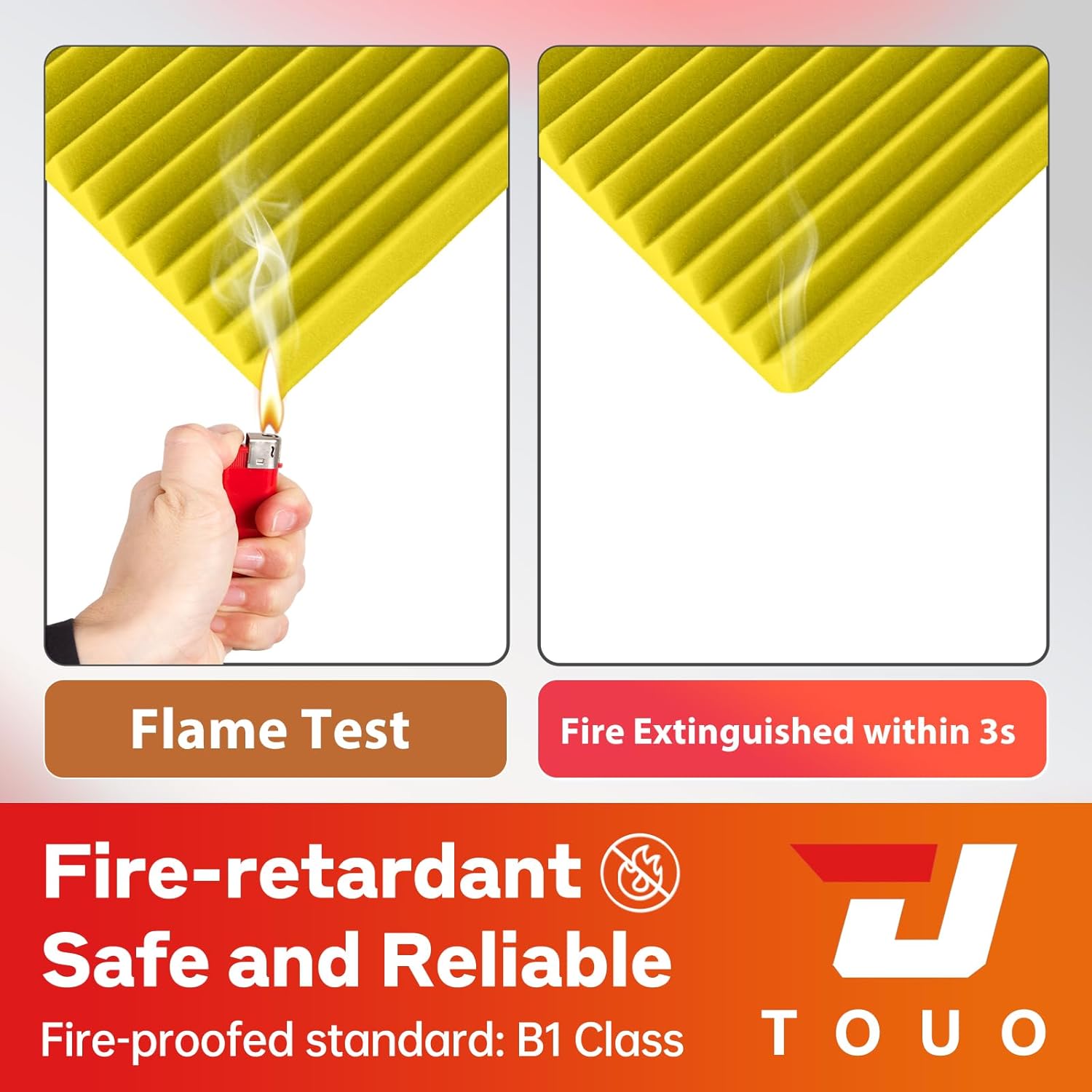 - ★ 【FIRE-RESISTANT & SAFE】:Our high-density acoustic foam features built-in flame-resistant properties, allowing it to self-extinguish within 1 minute when exposed to fire, preventing flame spread and reducing fire hazards. Designed with strong fire resistance and breathability, these acoustic panels sound absorbing help reduce fire hazards while maintaining durability. Made from pure polyurethane, they are non-toxic, odor-free, and safe for daily use, ensuring healthy indoor air quality. These soundproofing panels for walls and sound deadening panels work as an effective noise blocker for rooms, enhancing overall wall soundproofing panels.