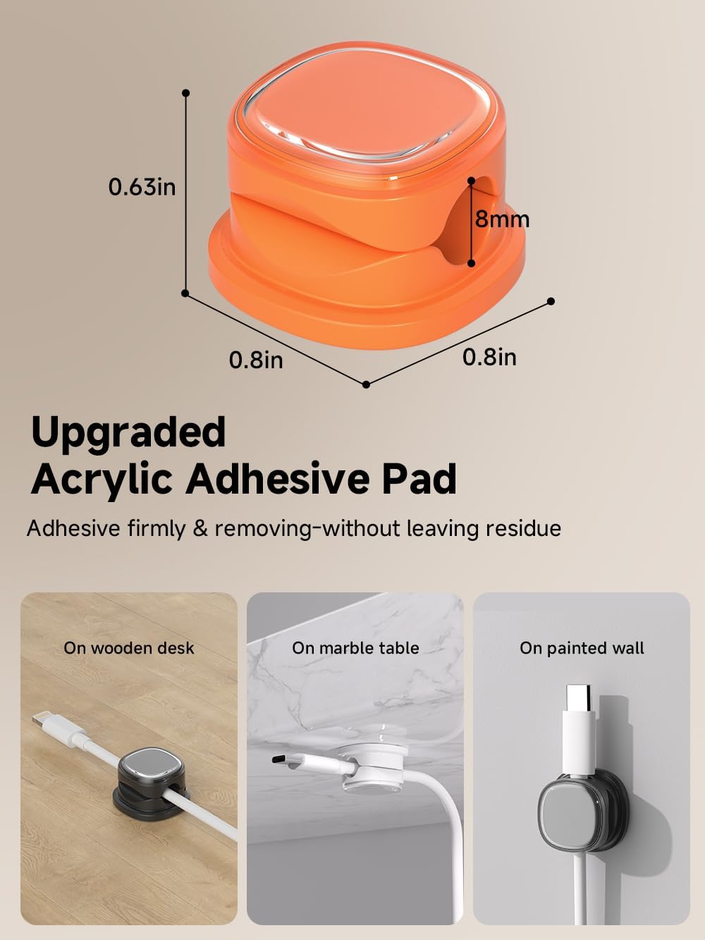 - No-Residue Acrylic Adhesive : Unlike ordinary adhesive tapes, our cable holder organizer utilizes the acrylic adhesive that is stronger and leaves no residue and won't damage your desk / nightstand or walls when removed. Just simply stick the wire holder organizer to any smooth and dry surface, such as wooden table, glass, or ceramic tiles, etc