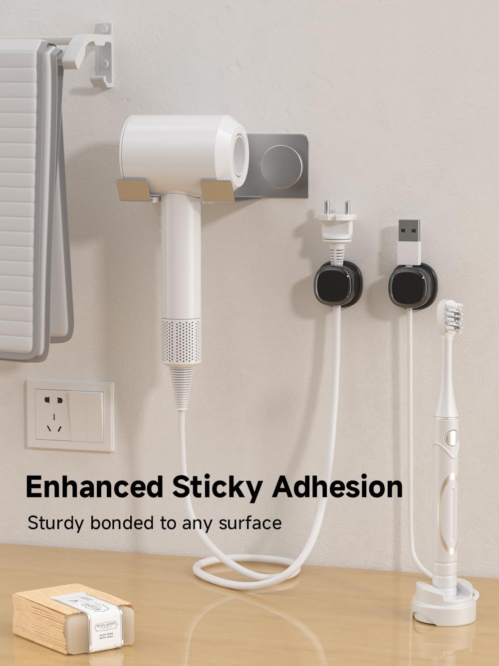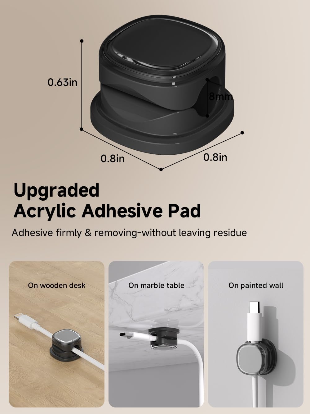 - No-Residue Acrylic Adhesive : Unlike ordinary adhesive tapes, our cable holder organizer utilizes the acrylic adhesive that is stronger and leaves no residue and won't damage your desk / nightstand or walls when removed. Just simply stick the wire holder organizer to any smooth and dry surface, such as wooden table, glass, or ceramic tiles, etc