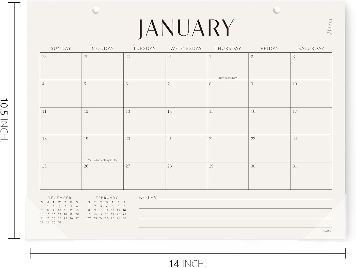 - ENHANCE YOUR EFFICIENCY: This desk calendar (14" x 10.5") is the ideal size to place it on your desk or hang it on your wall . It's a useful tool for seeing all of holidays, birthdays, appointments, deadlines, and staying on top of your important arrangements