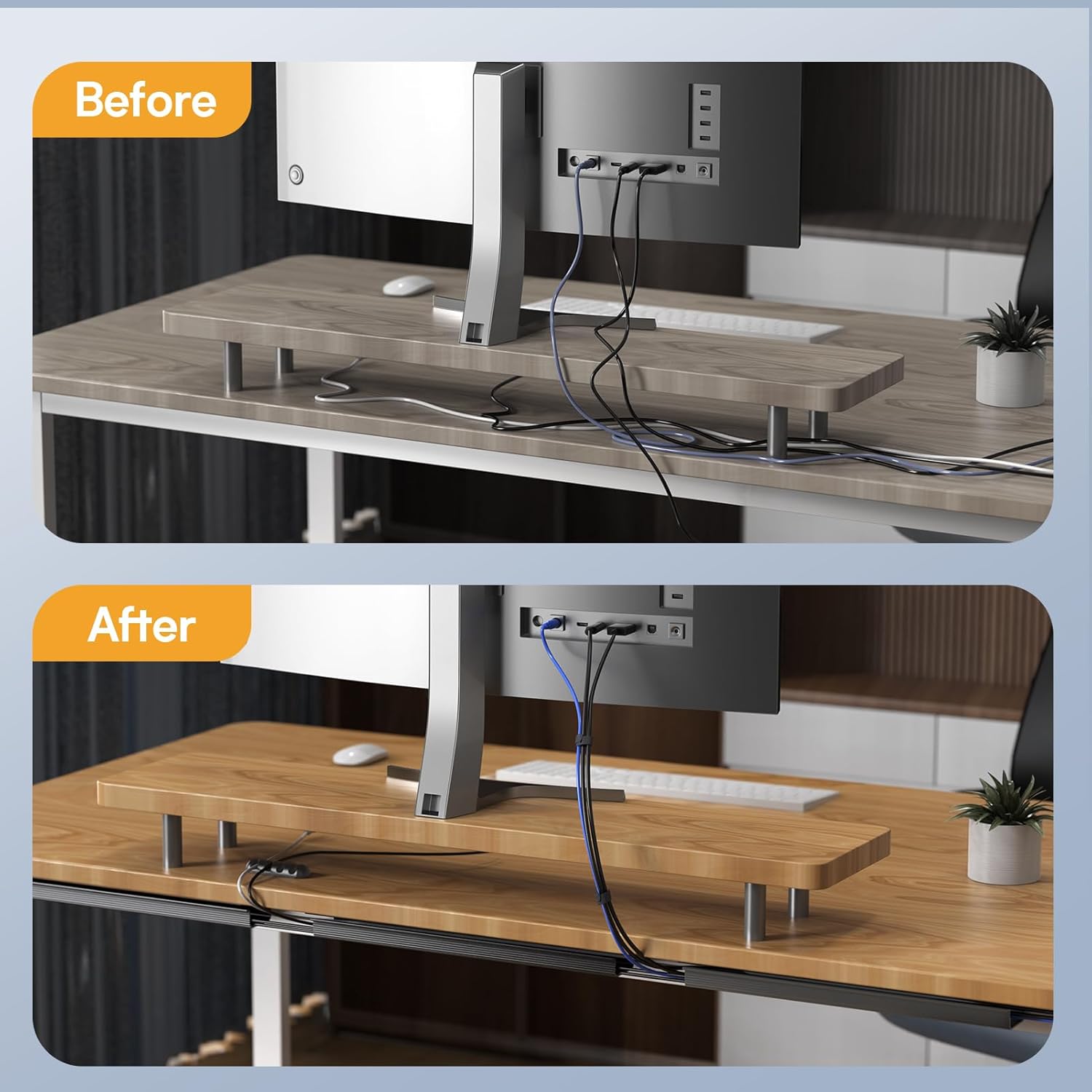 - User-Friendly Open Design: The innovatively designed outward-facing openings of our 157in desk wire management make it easy to add or adjust cables without fussing with the wires, significantly improving the user experience.