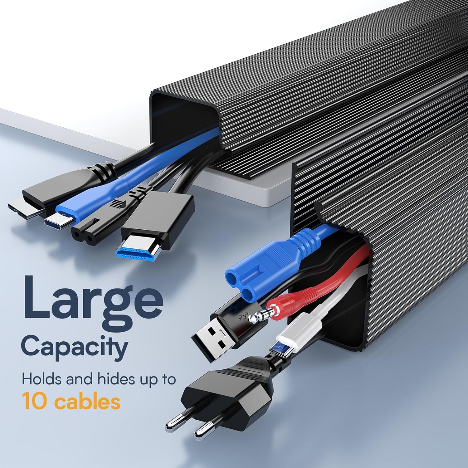 - Generous Capacity & Reliable Safety: The under deskcord management are large enough to accommodate at least 10 cables, meeting most wire management under the desk organizer needs. The use of PVC plastic material ensures excellent safety performance. Our desk cable management does not produce open flame at high temperatures, only presenting a charred surface, which greatly enhances the safety features of our cable raceway.