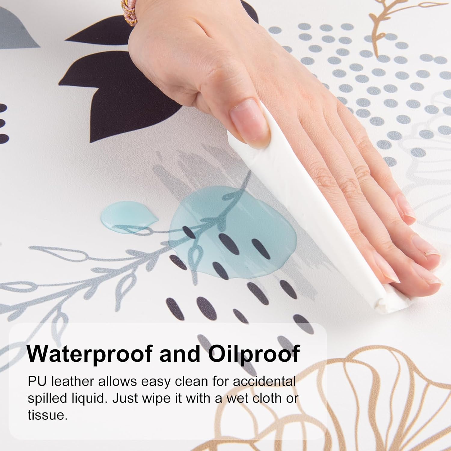 - Waterproof & Easy to Clean Desk Cover - Made of water-resistant and durable PU leather, this cute mousepad help prevent your desk from damages such as scratches, stains, spills and heat. Easy to clean, just wipe with a wet cloth or tissue.