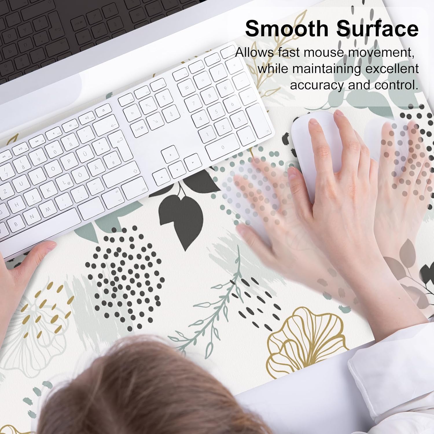 - Smooth Surface - Smooth surface allows fast mouse movement while maintaining excellent accuracy and control. Premium material provides maximum comfort for your wrist while enjoy writing, typing, browsing, mouse sliding, gaming, and even sleeping on this mouse pad.