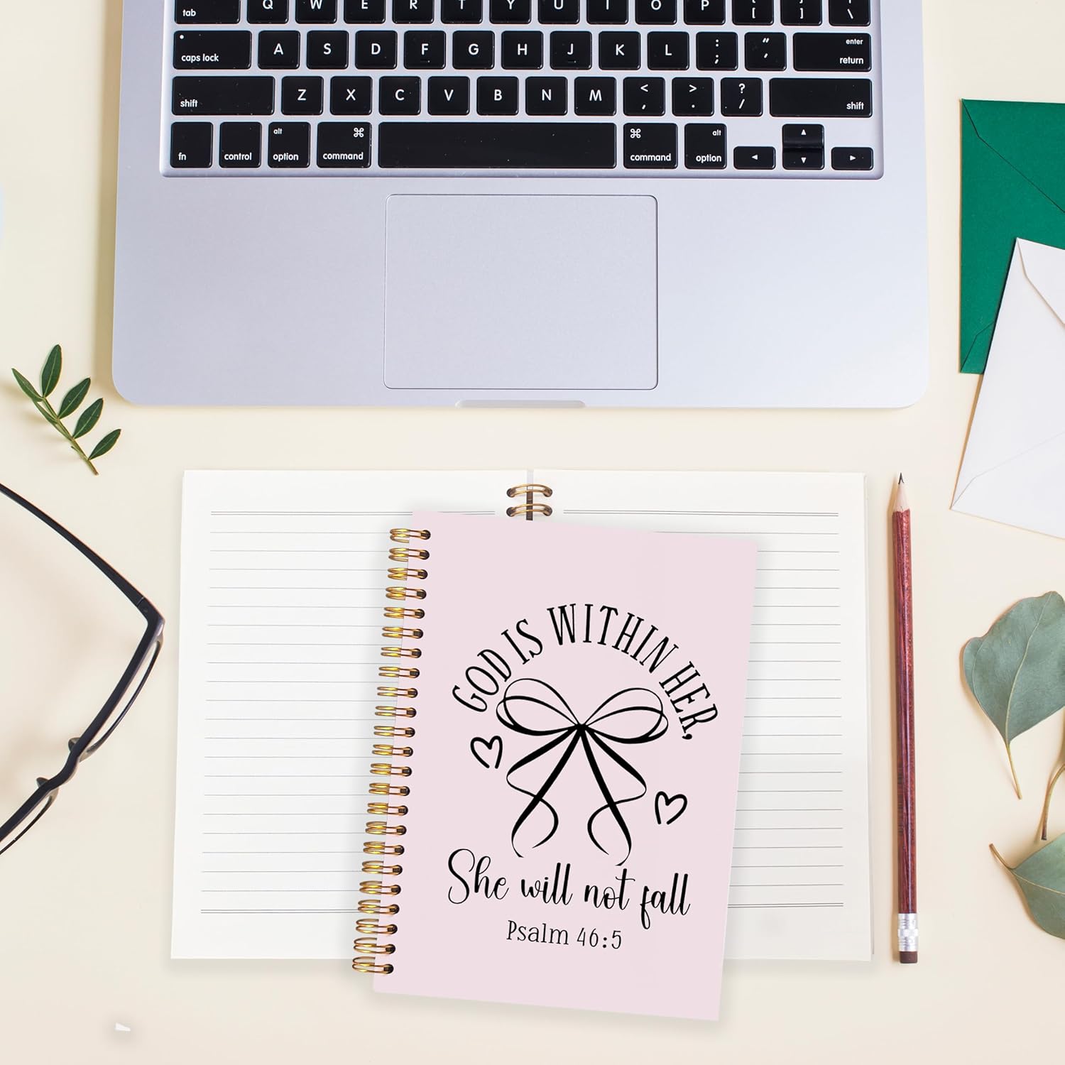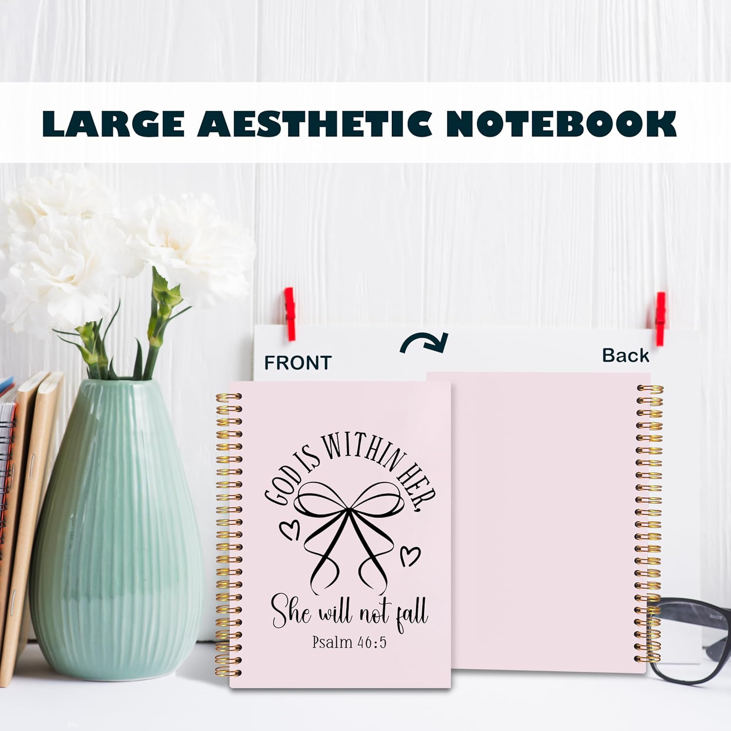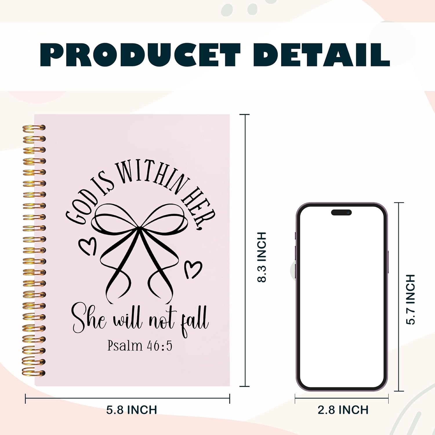 BearCake Pink Coquette Bow Christian Notebook Journal, God is Within Her She Will Not Fall Bible Journal for Women, Christian Religious Gifts for Woman, Hardcover Spiral Notebook 5.5x8.3