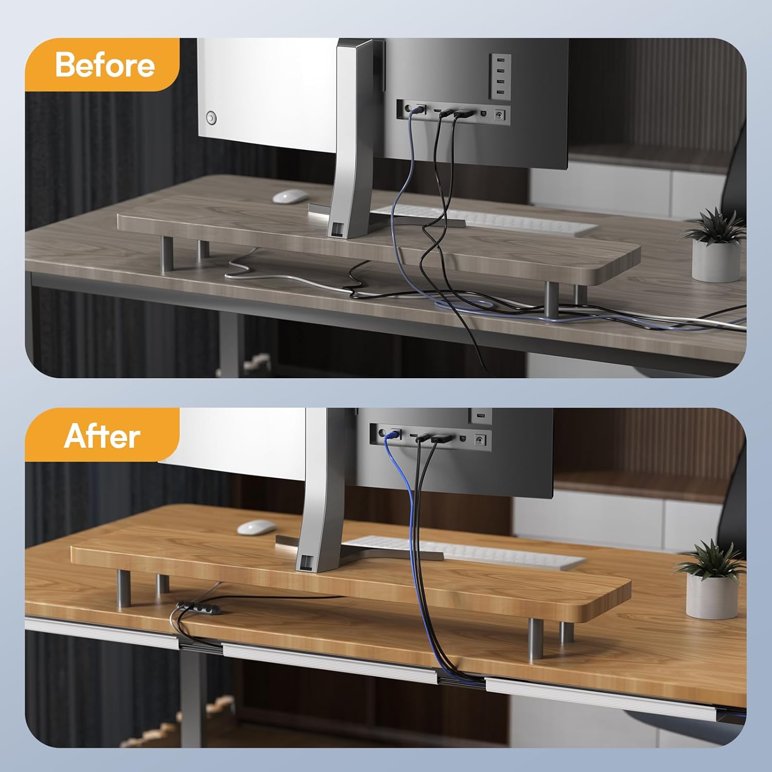 - User-Friendly Open Design: The innovatively designed outward-facing openings of our 157in desk wire management make it easy to add or adjust cables without fussing with the wires, significantly improving the user experience.