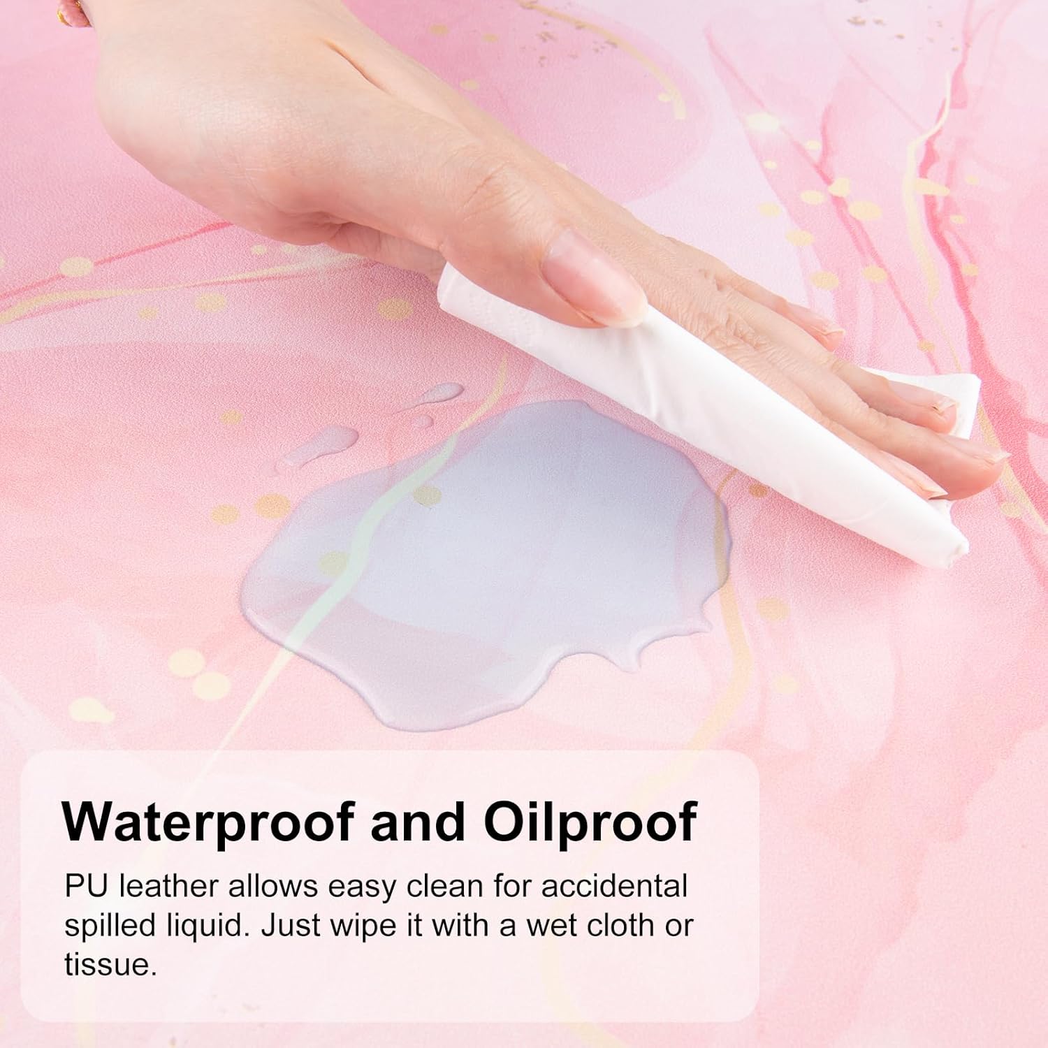 - Waterproof & Easy to Clean Desk Cover - Made of water-resistant and durable PU leather, this cute mousepad help prevent your desk from damages such as scratches, stains, spills and heat. Easy to clean, just wipe with a wet cloth or tissue.