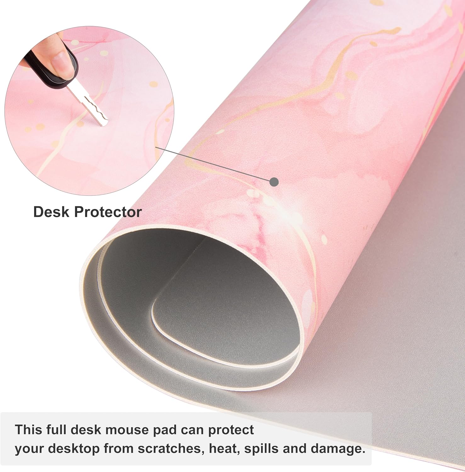 QIYI Large Mouse Pad, Extended Desk Mat for Desktop, PU Leather Waterproof Gaming Mousepad, Computer Desk Accessories Protector Writing Pads for School Office Home 31.5" x 15.7" - Dreamy Pink Marble