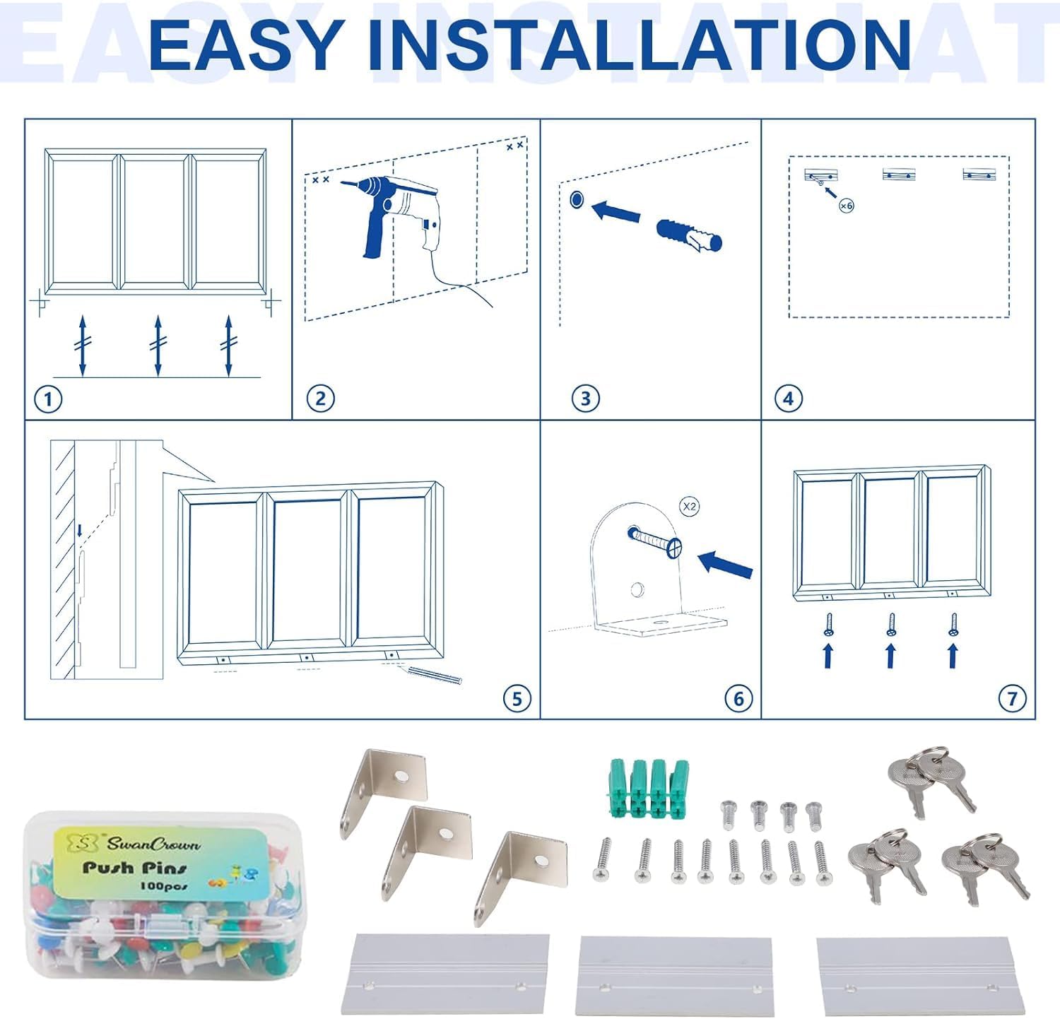 - π Wide Application β lockable bulletin board is great for offices, schools, apartments, hotels, hospitals, restaurants, and more. Ideal for public or shared spaces indoors or outdoors