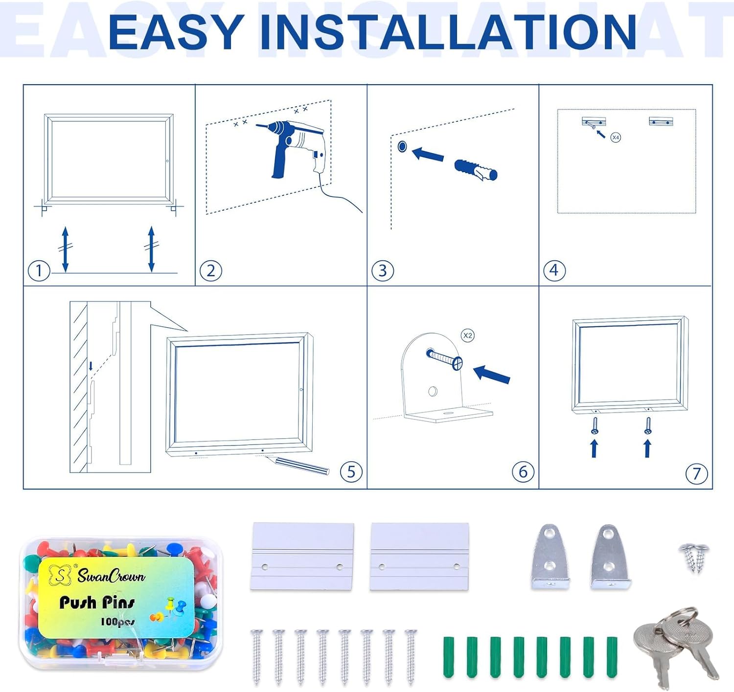 - π Wide Application β This lockable bulletin board is great for offices, schools, apartments, hotels, hospitals, restaurants, and more. Ideal for public or shared spaces indoors or outdoors