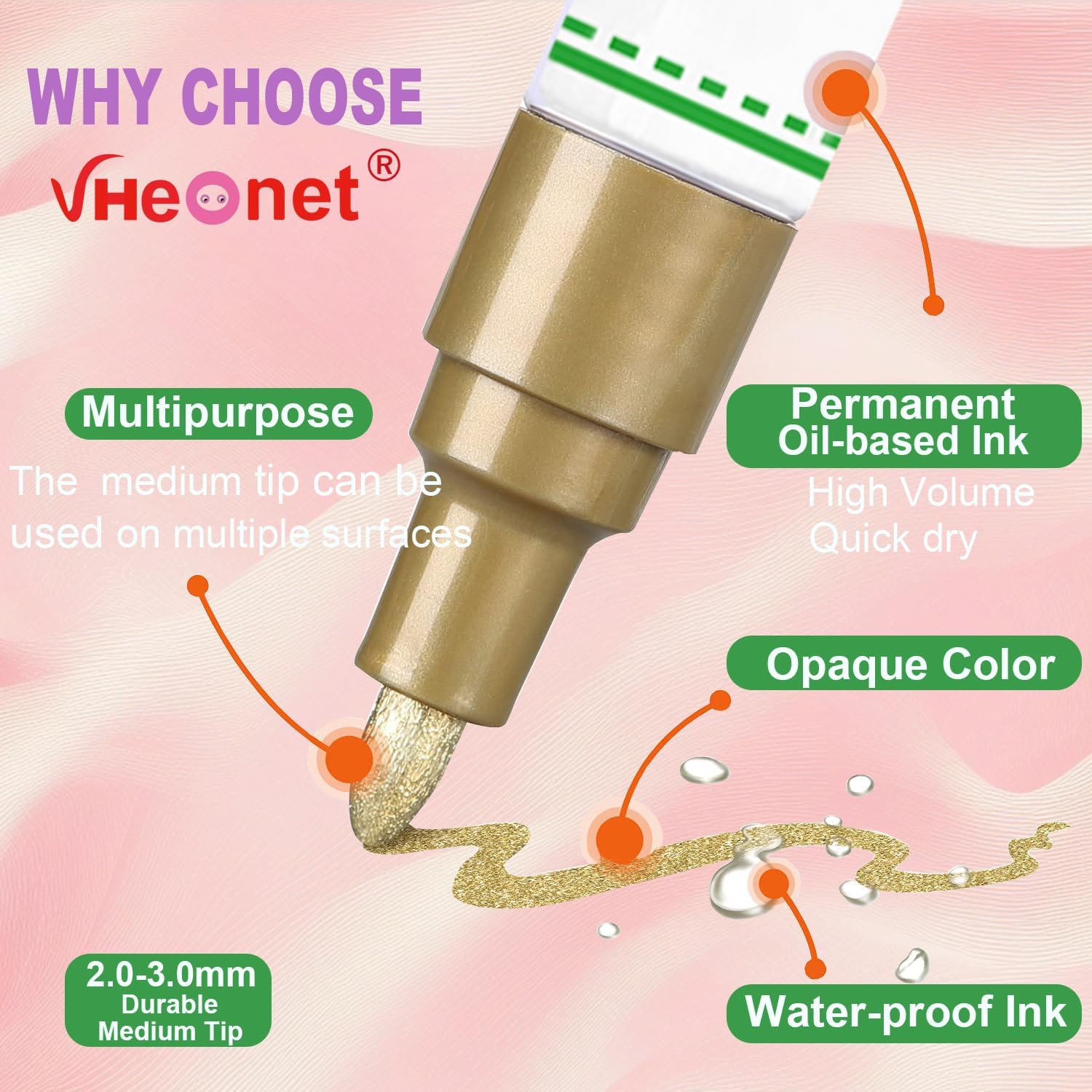 Pink Paint Pens marking pens Permanent Markers - 6 Pack Oil Based Waterproof Markers for Tire, Rubber,Wood, Rocks, Metal, Canvas,Plastic, Dark Surface,Craft office Supplies,Medium Point