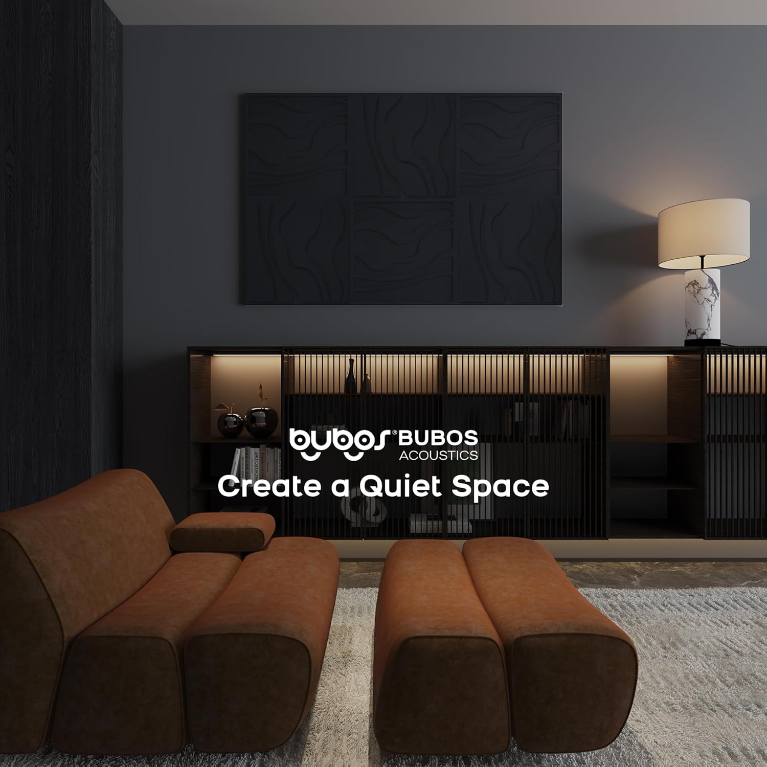 BUBOS Large Acoustic Panels, 6-Pack Soundproof Wall Panels Thickened 23.6 x 23.6 Inches, Self-adhesive Sound Absorbing Panels Decorative for Recording Studio Office Home Theater, Black