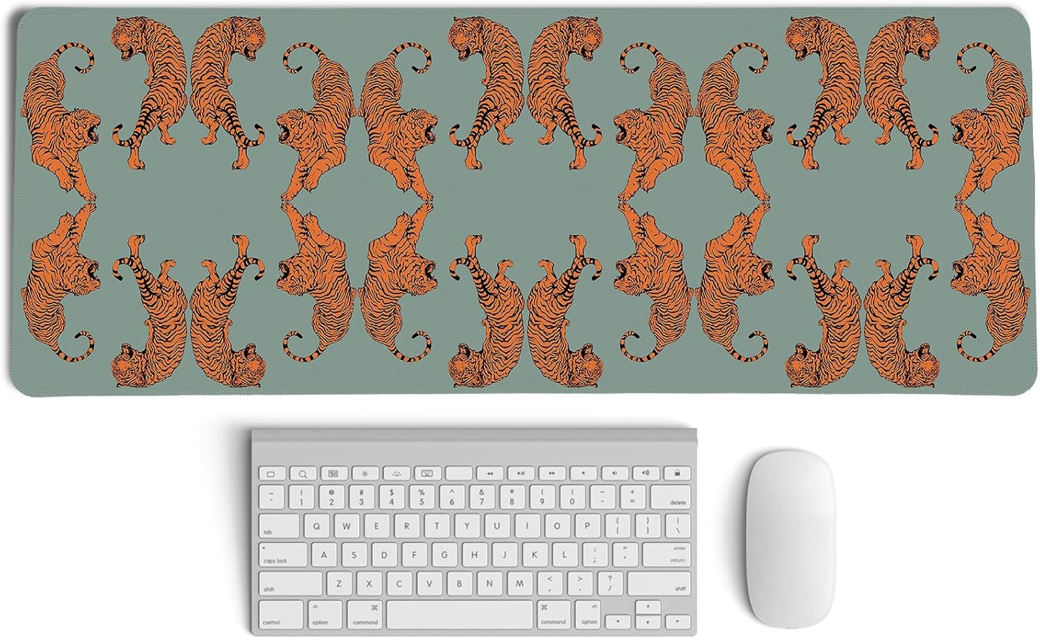 - 【Stylish appearance Designs】We choose the beautiful and fashionable sage green orange preppy tiger pattern, and use excellent printing technology to ensure bright colors. This is a great decoration for your home office desk and dorm table mat, which can add some personality to your workplace and home.
