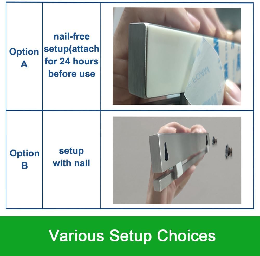 - 【Dual Installation Freedom (Drill or No Drill)】Our magnetic knife strip for wall no drill offers versatile mounting options—quickly install using adhesive (wait 24 hours) on smooth surfaces like tile, glass, wood, and metal(Not for stucco, wallpaper, or gypsum walls),or permanently secure it with screws. Ideal for home styles.
