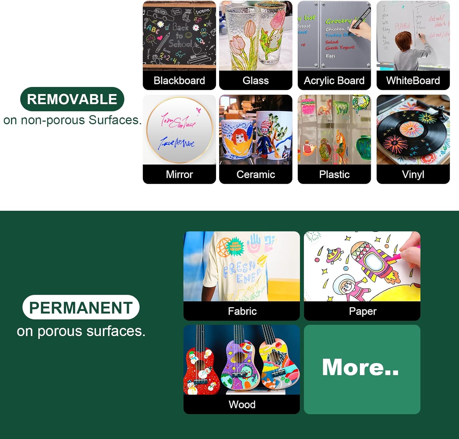 - Versatile. Best use on blackboards, chalkboard, dry erase board, glass, windows, plastic, ceramic and most nonporous surfaces.