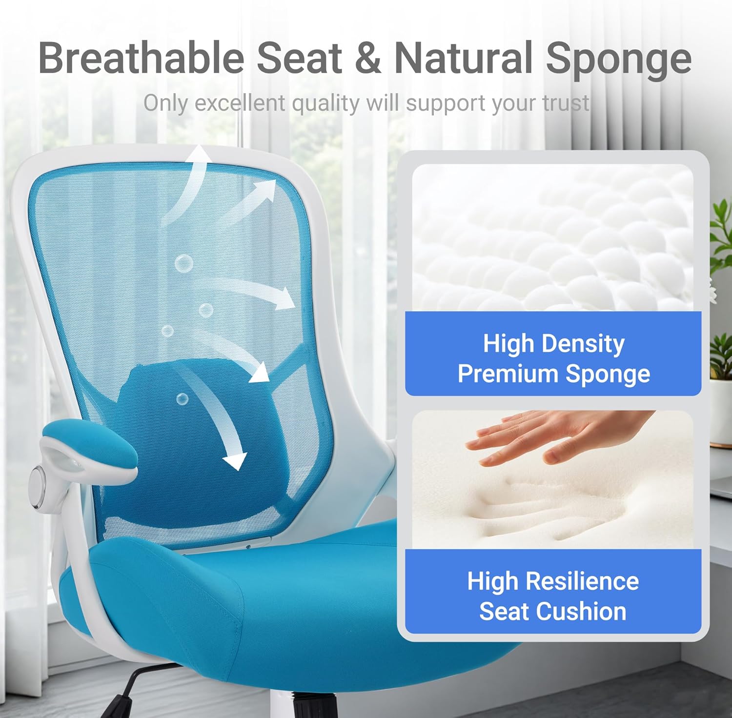 HYLONE 400lbs Heavy Duty Office Chair, 5" Thickened Seat Ergonomic Desk Chair with Adjustable Armrests, Home Office Computer Chairs for Long Hours Mesh Executive Chair(Blue)