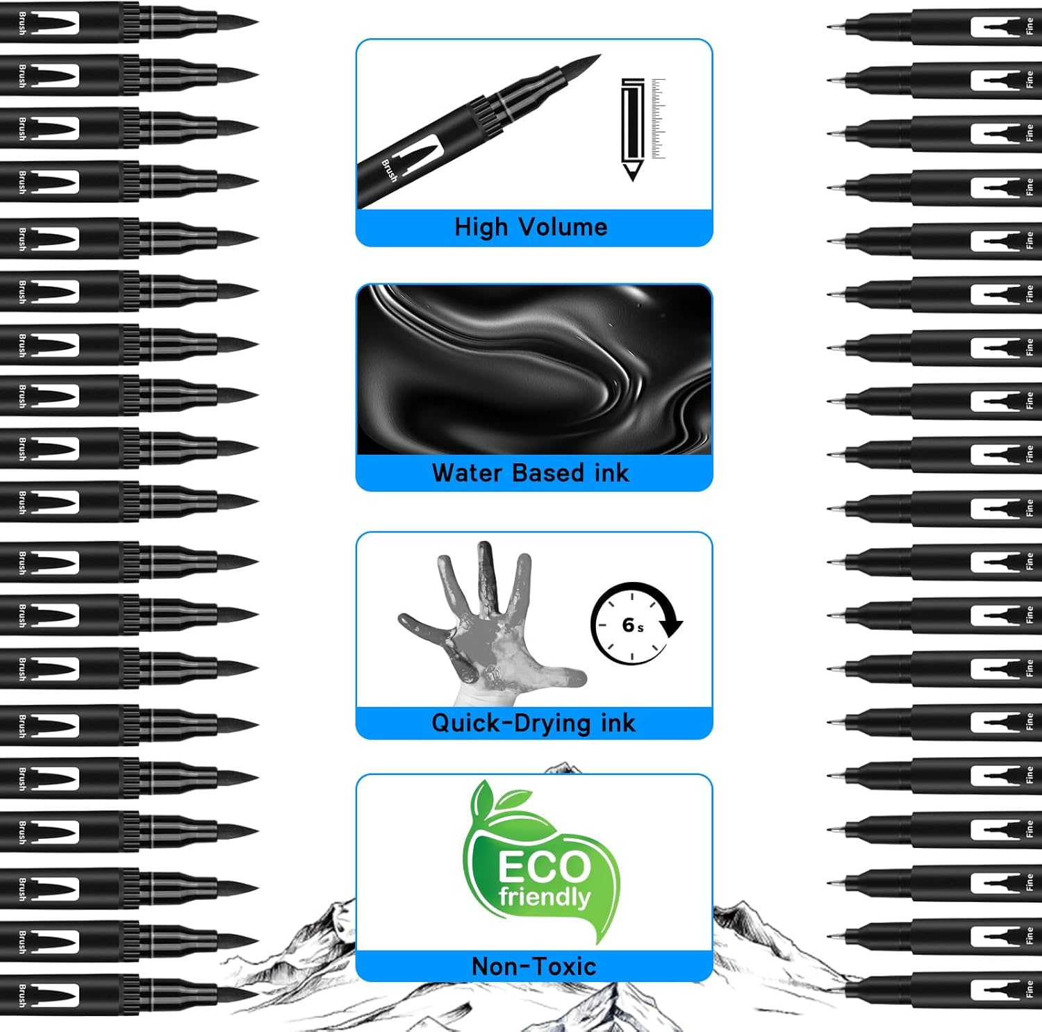 - Premium Quality Ink - Smooth, water-based ink is odorless, acid-free, and non-toxic. Dries quickly to prevent smudging on hands or paper—ideal for left-handed users and kids