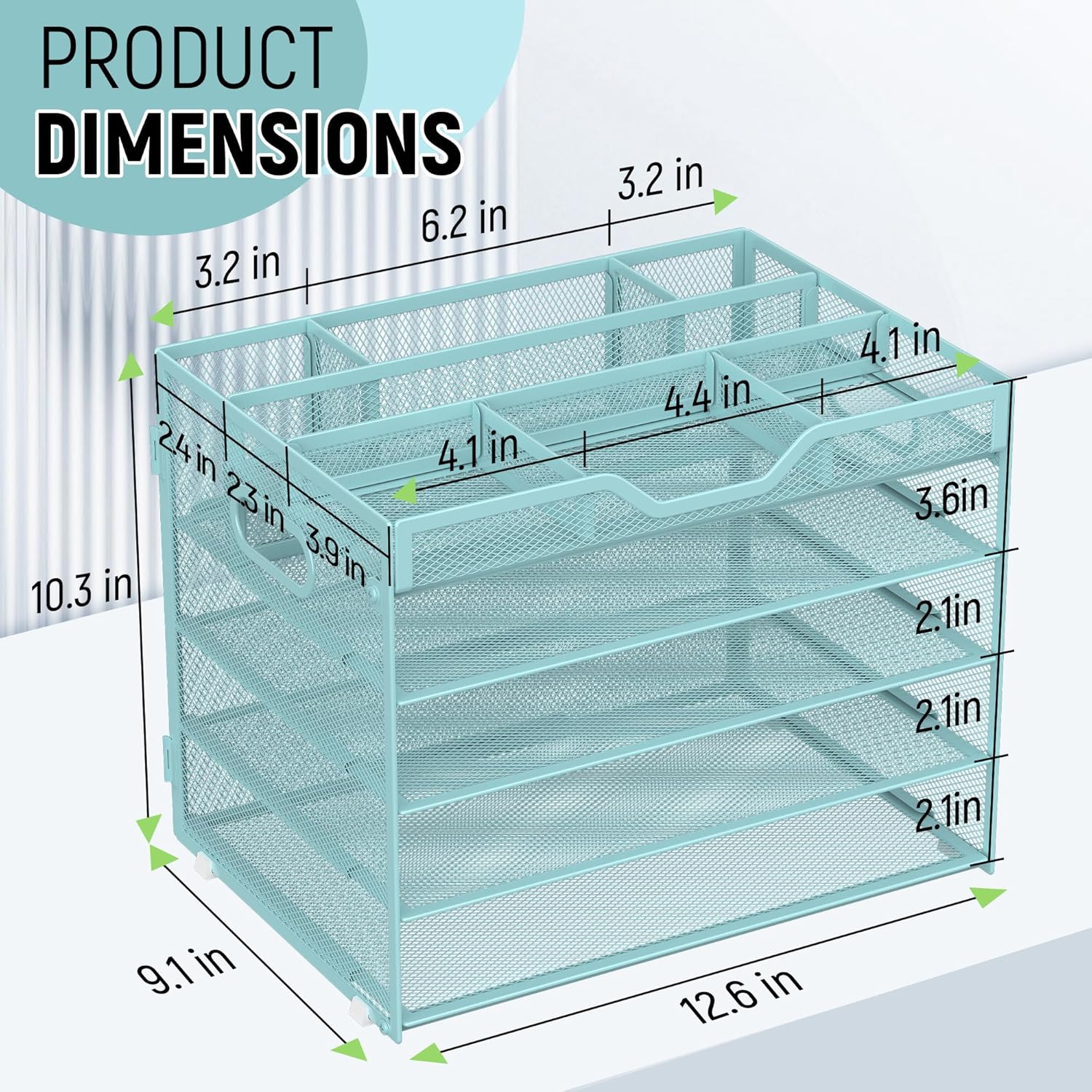 - Sturdy Metal Construction with Powder Coated Finish-This blue 5-tier desk organizer is crafted from durable metal with a sleek powder-coated finish, ensuring long-lasting strength and resistance to wear. The premium office desk organizer material provides stability while maintaining a modern, professional look perfect for any desk or office setting. An essential addition to your desk organizers and accessories collection