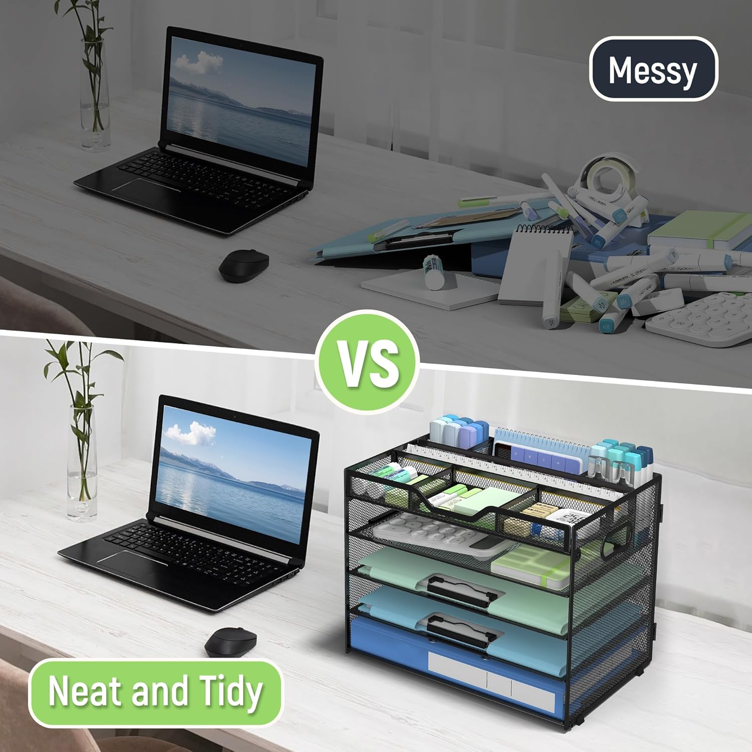 - Low-Maintenance, Easy to Clean-The smooth powder-coated surface of this professional office desk organizer resists dust and stainsโsimply wipe with a damp cloth for spotless upkeep. Ideal for busy offices, classrooms, or home workspaces where desk organization and hygiene matter most. The perfect paper organizer for desk among your essential office supplies