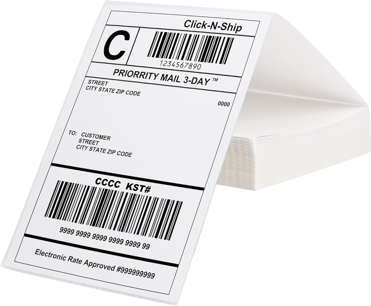 - 200 labels per stack, Strong adhesive to corrugated boxes and envelopes